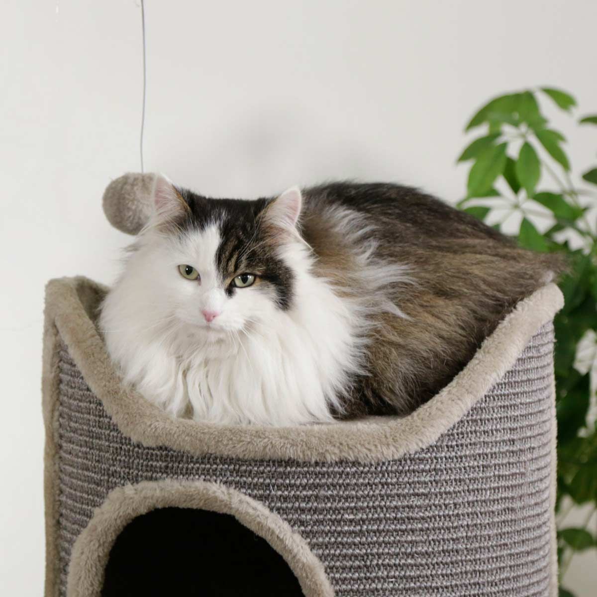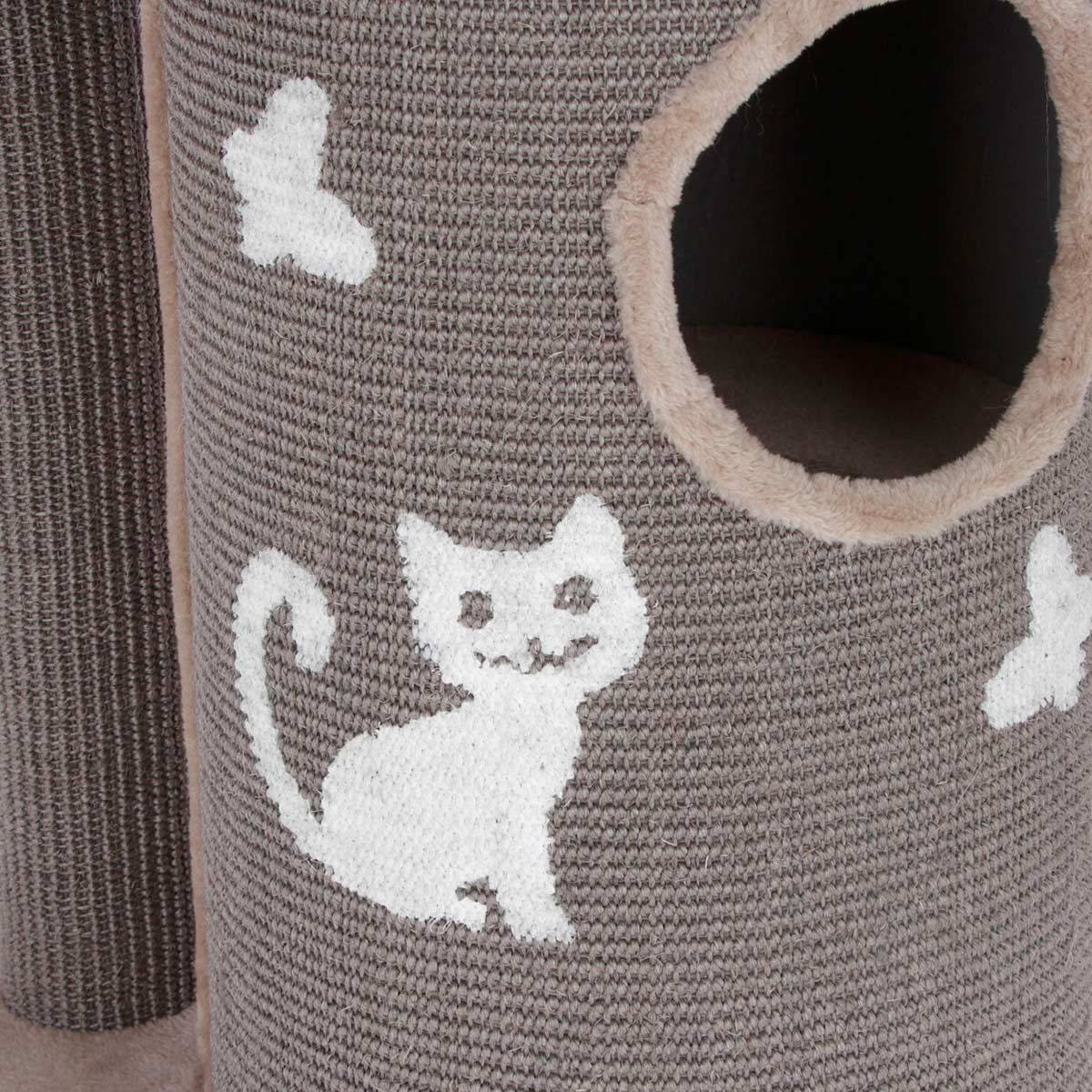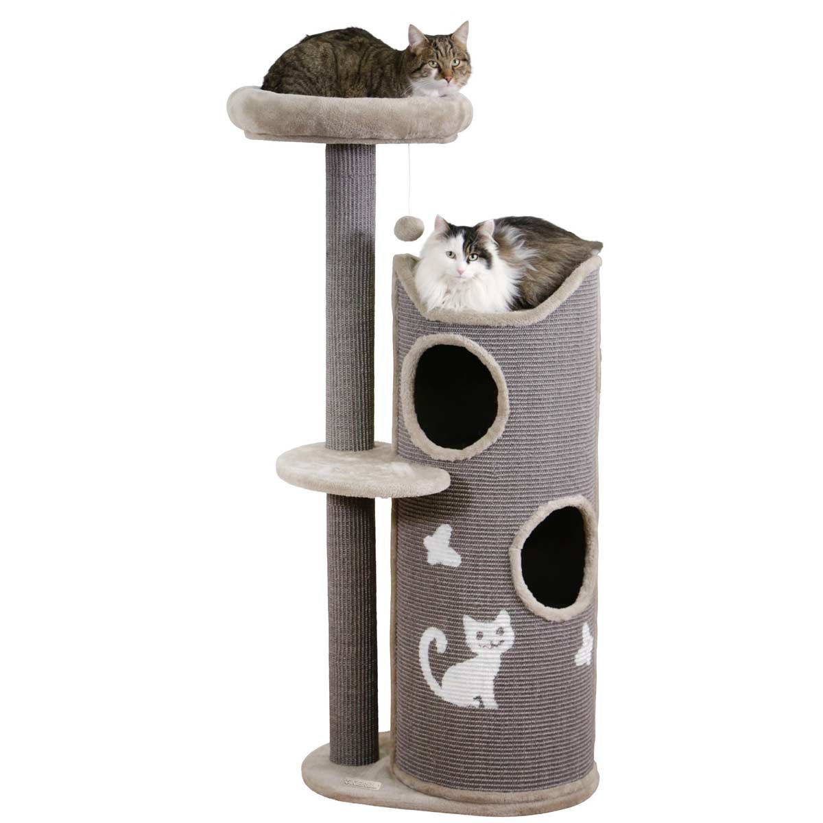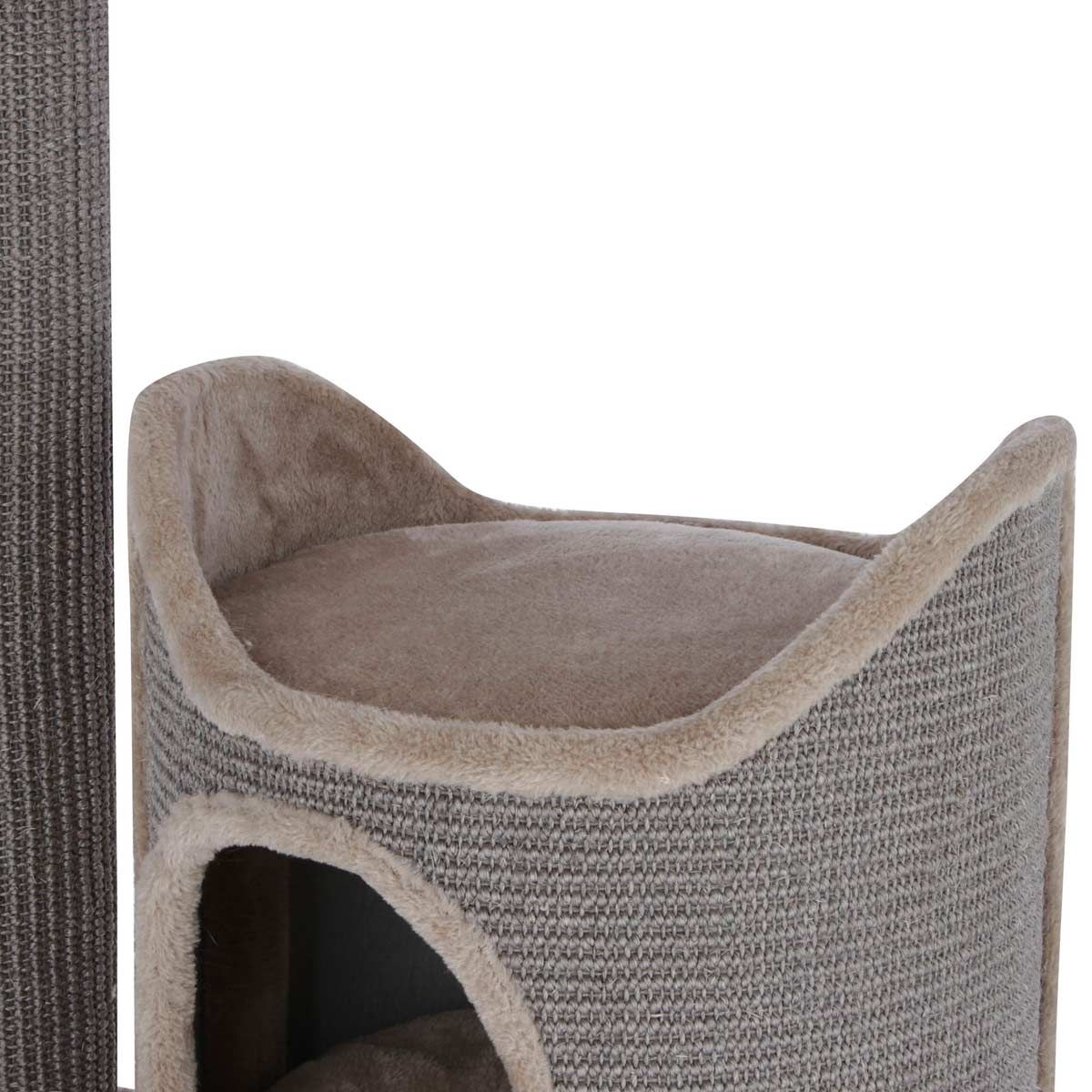 Ez a modern Tiana karcolóoszlop nem csak a nappaliban vonzza a tekintetet, hanem kényelmes játék- és alvóhely is a macskák számára, ahol rengeteg lehetőség van a karmok élezésére.