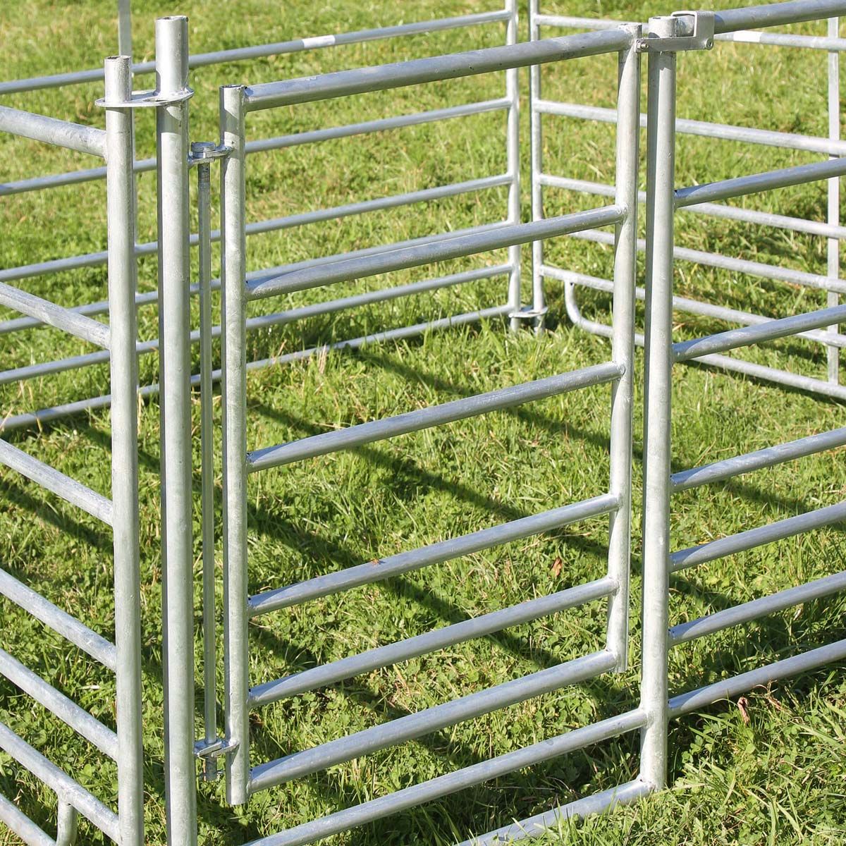 A kapuval ellátott birkapanel ideális az állatok biztonságos bejárásához. A kapu átjárószélessége 57 cm, és a legjobb módja a csordához való hozzáférés biztosításának. A dugaszolható csordakészlet a könnyed összeszereléssel és szétszereléssel inspirál, és ideális juh- és kecskepásztorkodáshoz. Az előgyűjtő területek, karámok, egyéni és csoportos karámok vagy karámelválasztók nagyon gyorsan felállíthatók és a flexibel a 4 birkapanel segítségével. Ha bővíteni szeretné, a paneleket szükség szerint beállíthatja, és továbbiakkal bővítheti, hogy még több helyet biztosítson. Bármennyi panel kombinálható egymással. 7 keresztcső, alulról felfelé növekvő távolsággal, megakadályozza a bárányok átcsúszását. Ez a tűzihorganyzott acélcsőből készült birkapanel nagyfokú stabilitást, időjárásállóságot és tartósságot ígér.