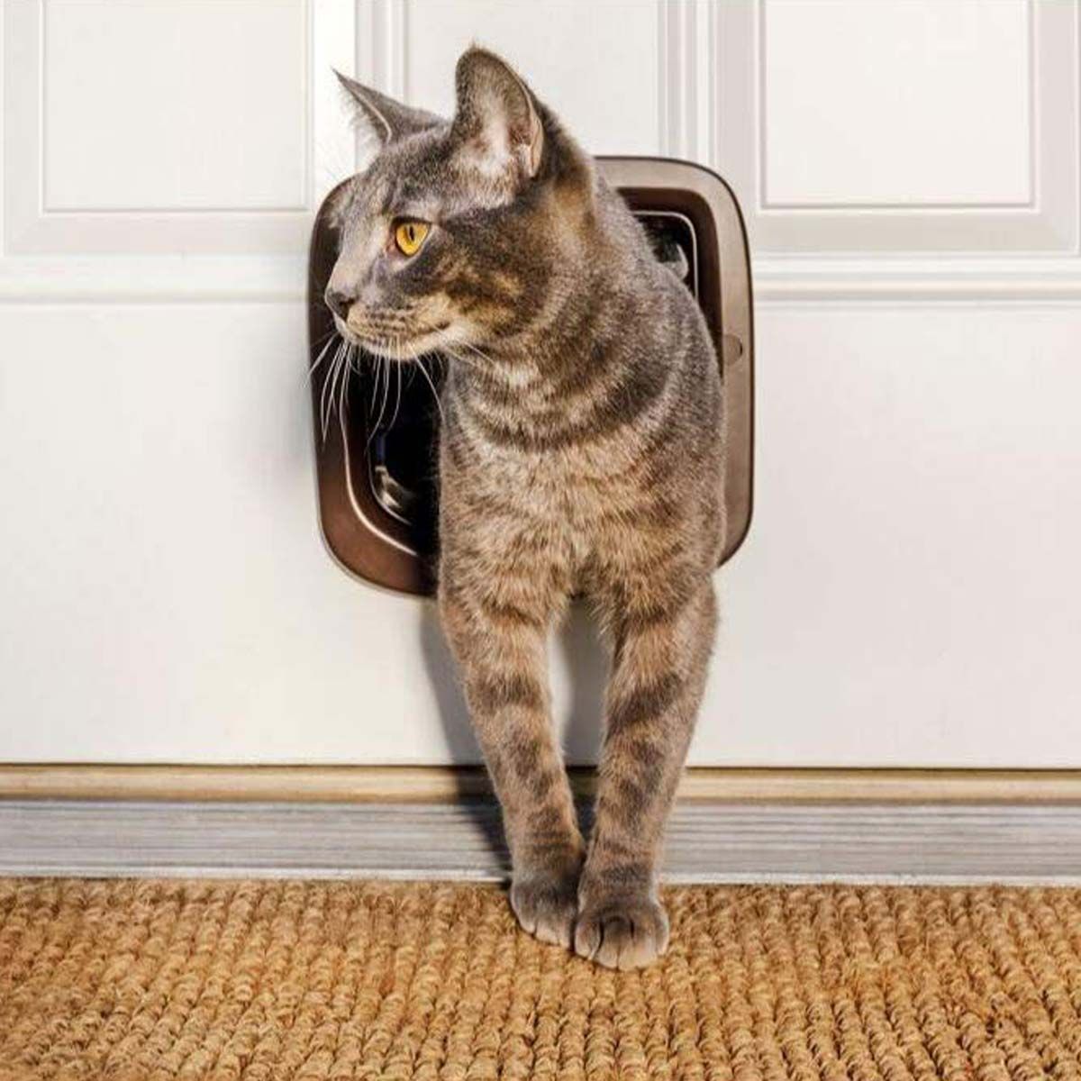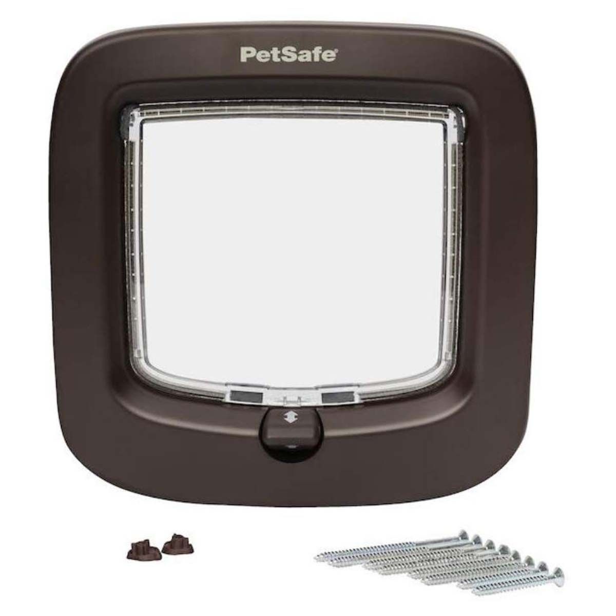 PetSafe macskaajtó 4 irányú barna - robusztus macskaajtó kézi zárással