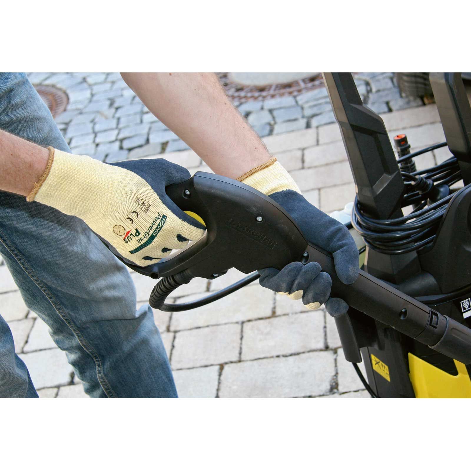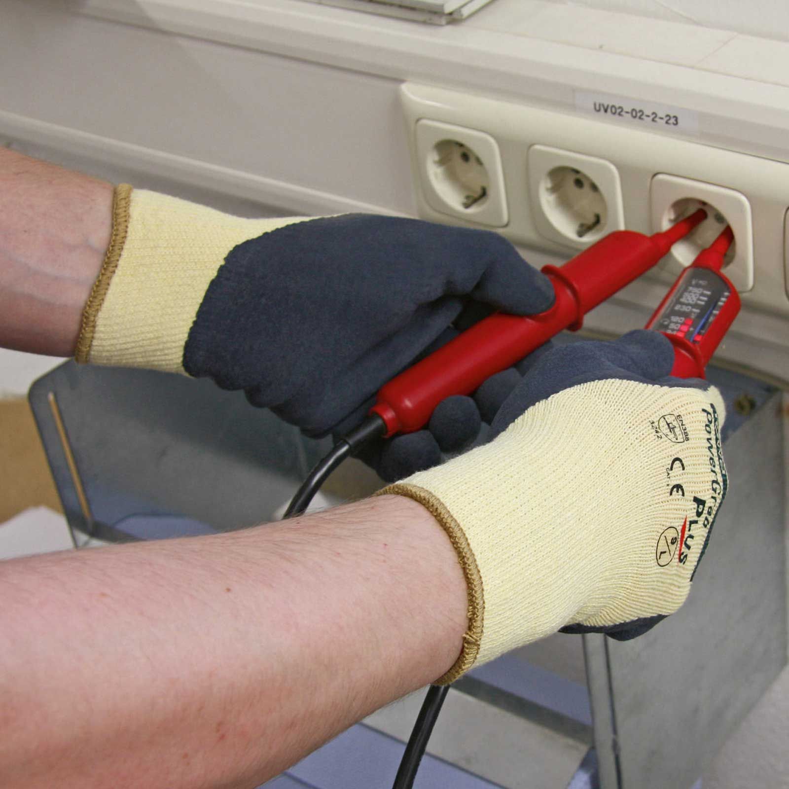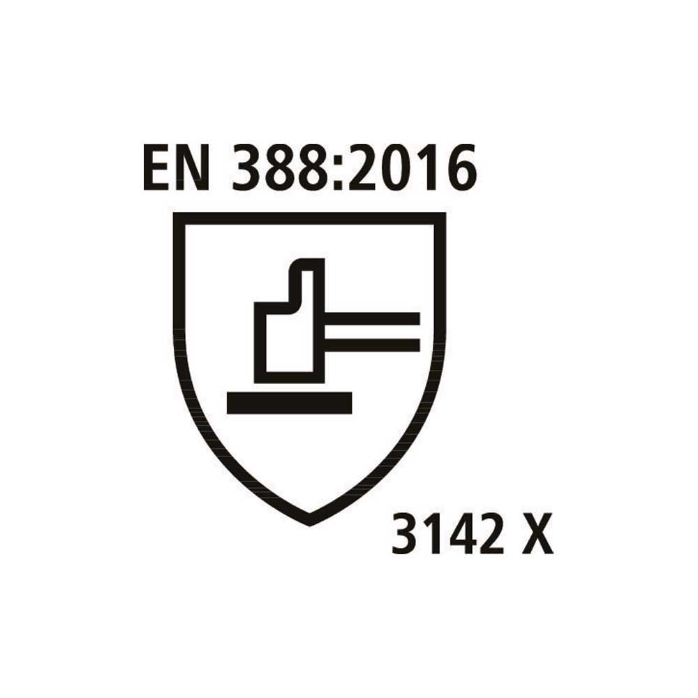 A finom kötésű kesztyű (10-es mérés ) poliészterből és pamutból készült. A tenyér latexbe van mártva, és a hüvelykujj is teljesen be van burkolva. A kézhát és az ujjak szabadok, így biztosítva a légáteresztést. A munkakesztyűt "MicroFinish " bevonattal kezelték, ami különösen tapadóssá teszi. A kesztyű mosott, így maximalizálva a latexallergia elleni védelmet.