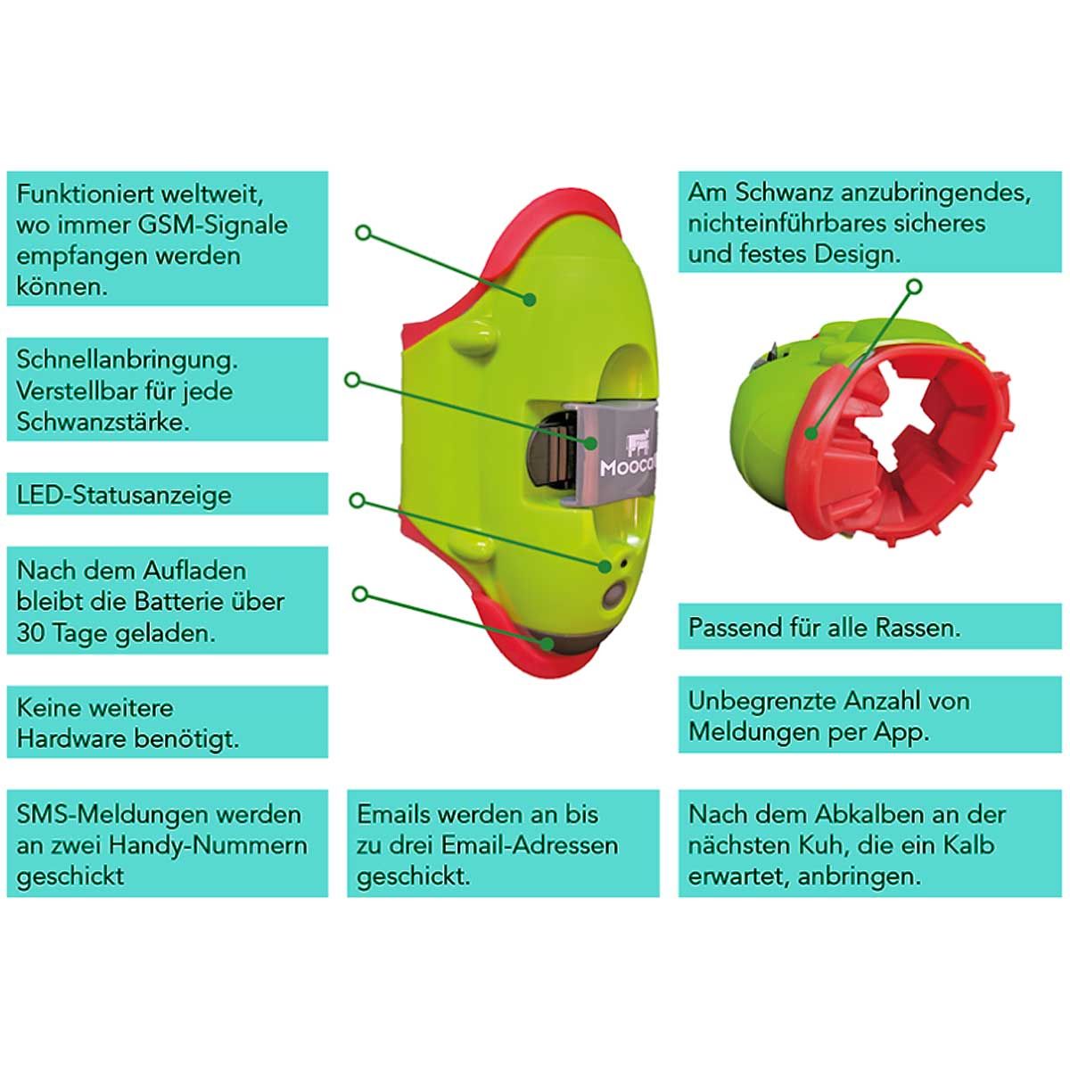 időben értesül a tehenek születéséről anélkül, hogy folyamatosan ellenőriznie kellene a teheneket. A MooCall ellésérzékelő méri az összehúzódásokat, és körülbelül 1 órával az ellés előtt SMS-t, e-mailt vagy értesítést küld az alkalmazáson keresztül. AMoocall ellésérzékelő egy pillantással