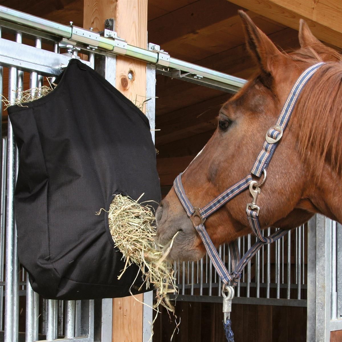 A lószénás zsák ideális a versenyekre, a pótkocsin való szállításhoz vagy az istállóba. A szénazsák 100% poliamidból készült, és 2 erős akasztógyűrűvel rendelkezik.