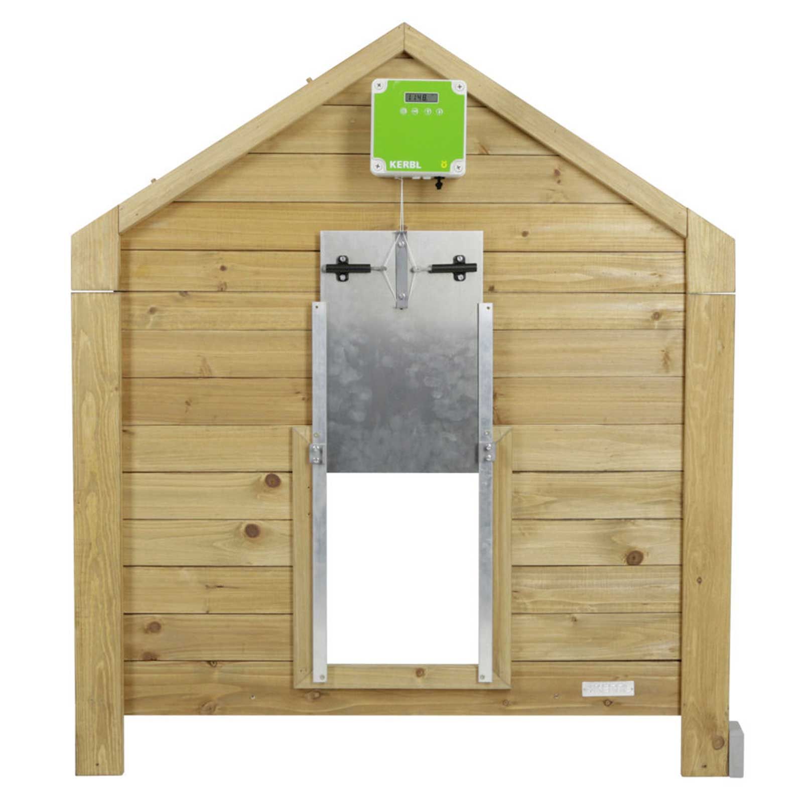 Automata csirkeól ajtó - A csirkeól ajtó automata nyitása és zárása Az automata csirkeól ajtóval a tyúkólak ajtói vagy tolóajtói automatikusan nyithatók és zárhatók a napszaktól vagy a fényviszonyoktól függően. Az elektronikus vezérlés szükség szerint nyitja és zárja a baromfiajtót. A csirkeól ajtóhoz csatlakoztatott elektronikus vezérlés kinyitja a tyúk vagy csirkeól függőleges ajtatját, amikor világosodik, és amint besötétedik, ismét bezárja az ajtót. Ezenkívül a készülék kézi működtetése is lehetséges. Ezt közvetlenül a készüléken vagy a kézi gomb segítségével teheti meg. A beépített szürkületkapcsoló érzékenysége egyedileg állítható, így megakadályozható a véletlen nyitás zivatar, a közeli fények vagy a csarnok reflektorai esetén. Ha az automata baromfiajtó zárási folyamata során egy állat az ajtó alá kerül, a baromfiajtó kapuőr motorja a kapu nyitásakor automatikusan leáll, és tovább záródik, amikor az állat kiszabadult. A tyúkólak ajtajának funkciója: Azautomata baromfiólak ajtajának beépített motorja egy alkonykapcsolóval vezérelhető, és így a függőleges csúszka nyitása vagy zárása egy kábelhúzással valósul meg. Kézi működtetés is lehetséges. Az önnyitó baromfiajtó háza rendkívül stabil, és megvédi a finom elektronikát a nedvességtől, a szennyeződéstől és a napfénytől. A kissé védett helyen elhelyezett elektronika rendkívül tartós alkatrészeinek köszönhetően hosszú éveken át használható. Az automata tyúkól ajtó több funkcióval rendelkezik az ajtó kinyitásához vagy bezárásához: Fényérzékelő: Az ajtót nappali fényérzékelővel vezérli. Időzítő: A csirkeól ajtót az idő függvényében vezérli. Különbséget lehet tenni a hétköznapok és a hétvégék között. Kézi vezérlés: Közvetlenül a készüléken vagy egy csatlakoztatott gombon keresztül. Automata csirkeól ajtó áttekintése: Automata tyúkól ajtónyitó Hálózati és akkumulátoros üzem lehetséges Nappali fénytől függő vezérlés fényszabályozással Időfüggő ellenőrzés Kézi vezérlés, a készüléken vagy csatlakoztatott nyomógombon keresztül Szállítási tételek: Vezérlőegység beépített motorral és kábelhúzással 230V hálózati adapter Elemek (4 x AA, már a készülékben) Fényérzékelő Csiga/görgő készlet (4 db) Használati utasítás Az automata csirkeól ajtó felszerelése a csirkeólra: Az elektronikus tyúkól ajtó felszerelése nagyon egyszerű: Először szerelje fel a csúszkalapot (tolóajtót), húzza nyitott helyzetbe, szerelje fel az elektronikus vezérlőt úgy, hogy a hurkon keresztül csatlakoztatni tudja a csúszkalaphoz (feltekert zsinór = szállítási állapot). Ezután helyezze be az elemeket - kész! Tervezze meg a telepítési helyzetet és különösen a vezeték elvezetését a csirkeól ajtótól a vezérlőig. Mérje ki a csirkeajtó nyílását, és gondoskodjon megfelelő tolóajtó vezetősínről. A megfelelő tolóajtók, vezetősínek és kiegészítő görgők tartozékként megtalálhatók üzletünkben. Ha az automata csirkeól ajtót hálózati feszültséggel kívánja ellátni, győződjön meg arról, hogy a közelben van-e 230 voltos konnektor. A tápegységet és a készülék felszerelési helyét védeni kell az esőtől. Az automata tyúkól ajtó nem kompatibilis az önzáró mechanizmussal rendelkező ajtókkal. Műszaki adatok: Tolóajtó minimális súlya: 0,5 kg Tolóajtó maximális súlya: 2,5 kg Maximum emelési magasság: 60 cm Tápellátás: 230 voltos hálózati üzem (hálózati adapter 12 voltos üzemhez) vagy akkumulátoros üzem (4 x AA) Hálózati kábel hossza: kb. 150 cm Fényérzékelő kábel hossza: kb. 98 cm Modellek: Automata csirkeól ajtó tolóajtó nélkül Automata csirkeól ajtó tolóajtóval 22 x 33 cm (normál csirkékhez) Automata csirkeól ajtó tolóajtóval 30 x 40 cm (normál és nagyobb csirkékhez) Automata csirkeól ajtó tolóajtóval 43 x 40 cm (a TierschNutztV szerint kereskedelmi célú tartásra alkalmas)