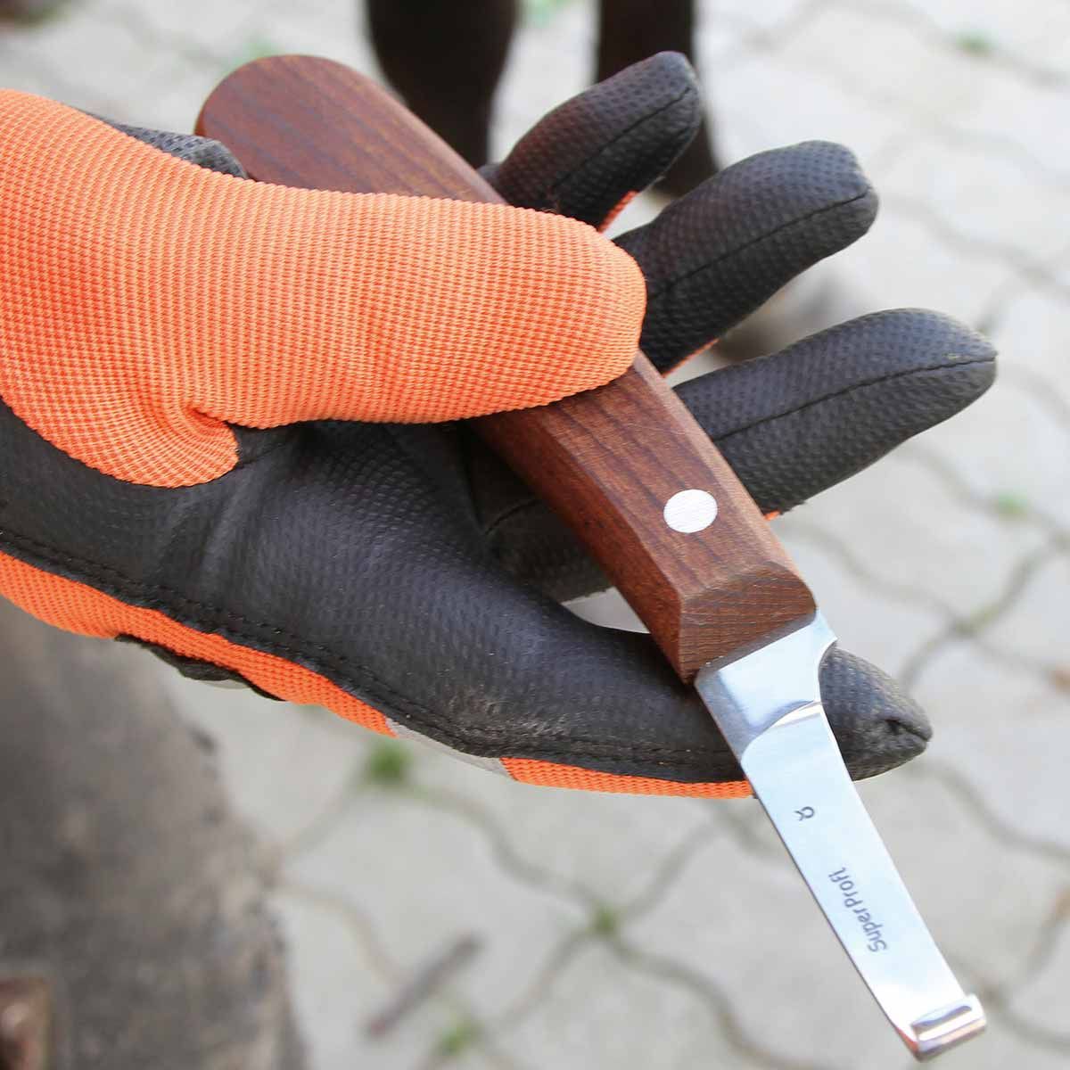 A kés a professzionális pataápoló szakembereknek és kovácsoknak, valamint mindazoknak, akiknek tökéletes eszközre van szükségük a pata- és karomápoláshoz! A SuperProfi patkolókés a Kerbl weboldalról egy balra vagy jobbra vágó patkolókés, különösen a bal- vagy jobbkezesek számára. Az ergonomikus bükkfa fogantyú biztosítja a fáradságmentes munkavégzést. Az extra éles speciális acélpenge hosszú élettartamot és élezhetőséget garantál.