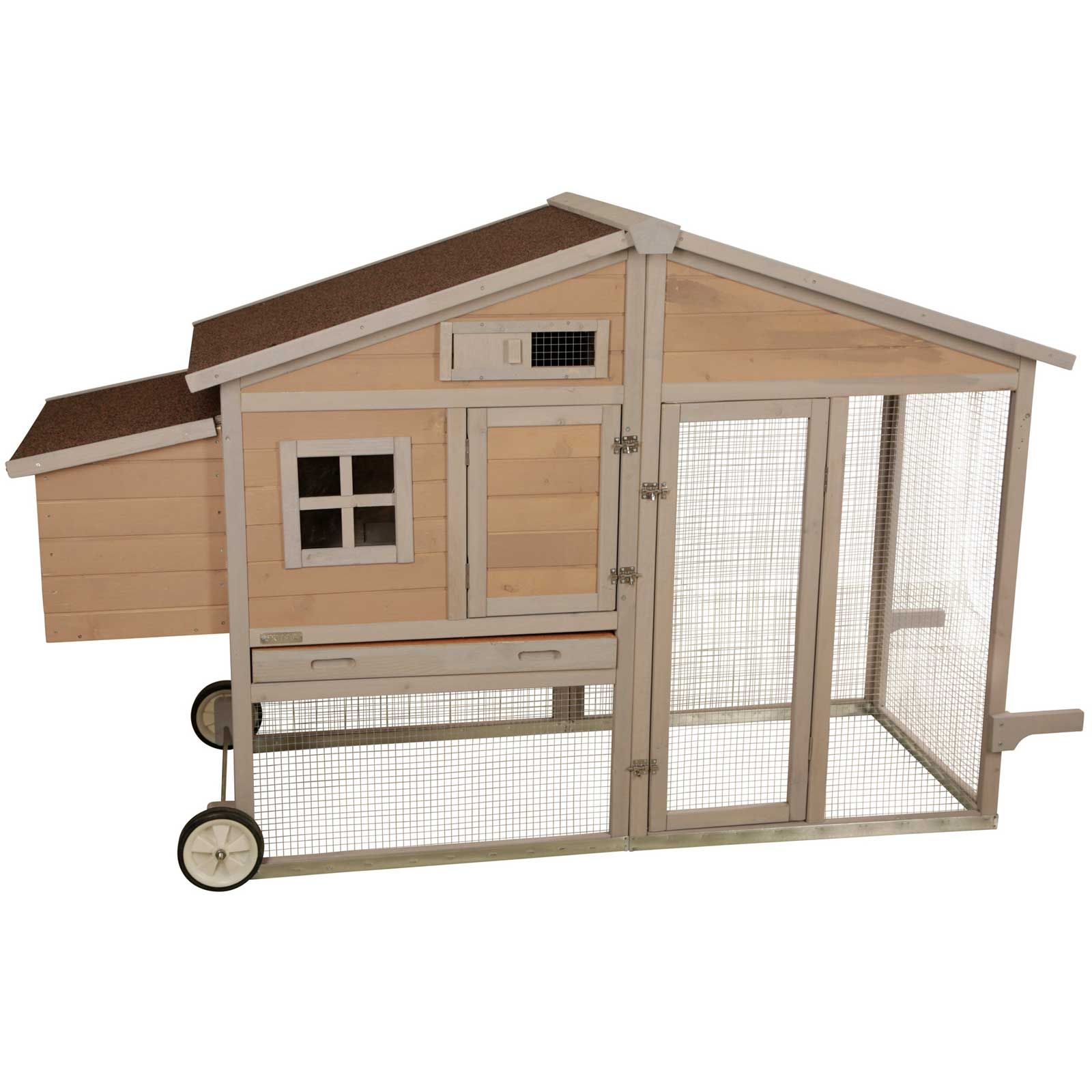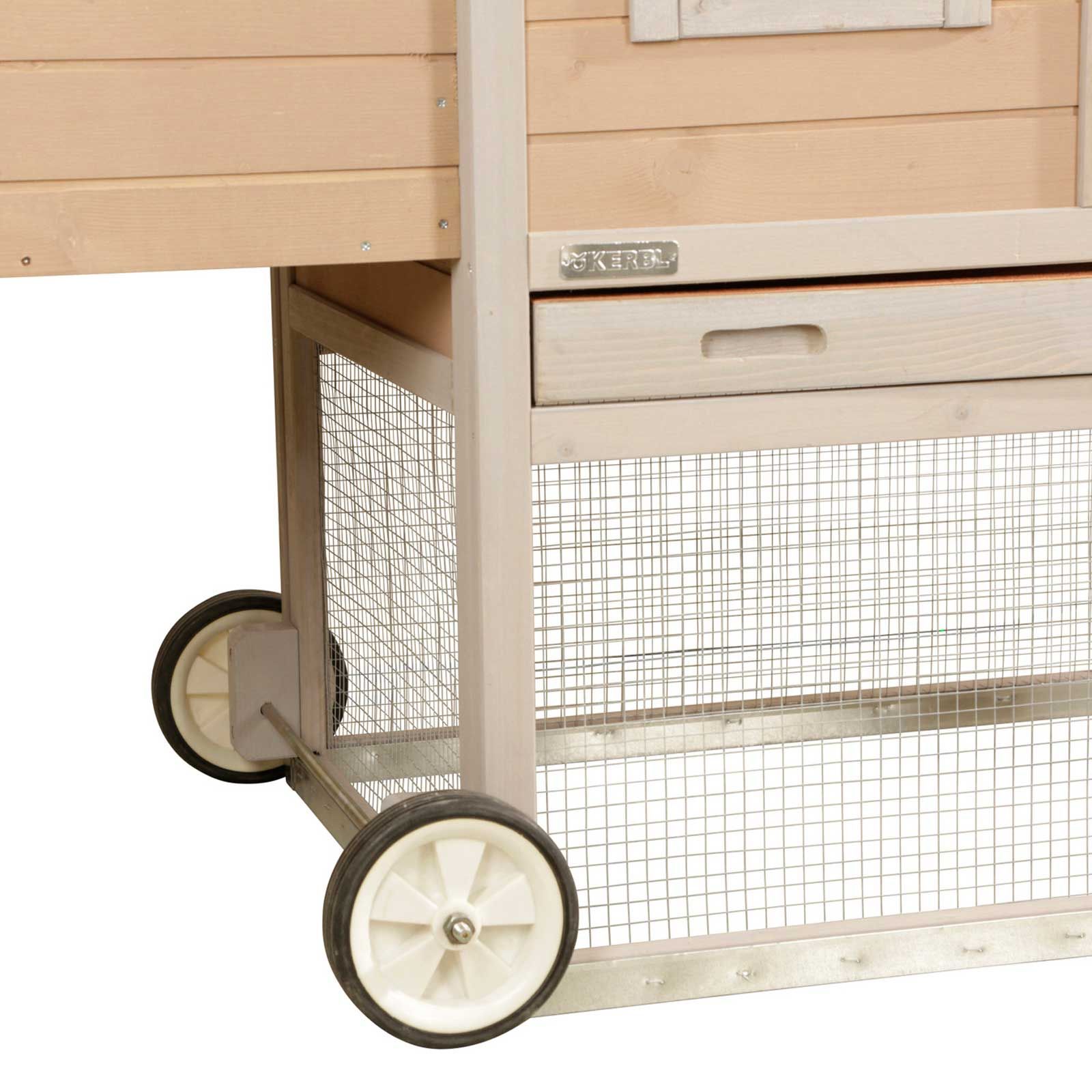 A Kerbl praktikus kerékkészletével a Bonny csirketárolót pillanatok alatt mobil csirketárolóvá alakíthatja. A mobil tyúkól előnyei a hagyományos modellel szemben, hogy a gyep védett, a csirkéknek mindig friss zöld áll rendelkezésre, az állatok kevesebbet állnak a sárban, és csökken a parazitafertőzés esélye.Egy pillantásra