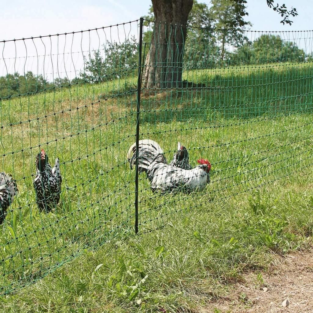 A baromfi kerítéskészlet tartalmaz egy 1 x 50 m-es hálót is. A háló 112 cm magas, és 15, 2 tüskével ellátott oszlop tartja a helyén. A dupla tüske nagyobb stabilitást biztosít a földes és homokos talajokon, mint az egyszerű tüske. A fűzfaháló alsó részén lévő keskenyebb hálószemeknek köszönhetően a kacsák, libák, pulykák, csirkék, fürjek, csibék , valamint a kisebb állatok, például bárányok, kutyák és macskák biztonságosan elkeríthetők. Természetesen a villamosítás lehetőségének köszönhetően ez a háló arra is szolgál, hogy megvédje az állatokat a nemkívánatos vendégektől, például a rókáktól, martalócoktól és más ragadozóktól. A csirkeháló tizenkét műanyag szálából a felső tizenegy élő. Az alsó szál nem feszültség alatt van, hogy ne szakítsa meg az elektromosság áramlását a füveken keresztül. Szükség esetén a csirkekerítés könnyen bővíthető más hálókkal. Az optimális áramlás több elektronikus hálóval is adott, amelyek kb. 250 m hosszúságig (növényzet nélkül) egymás mellé vannak fűzve.