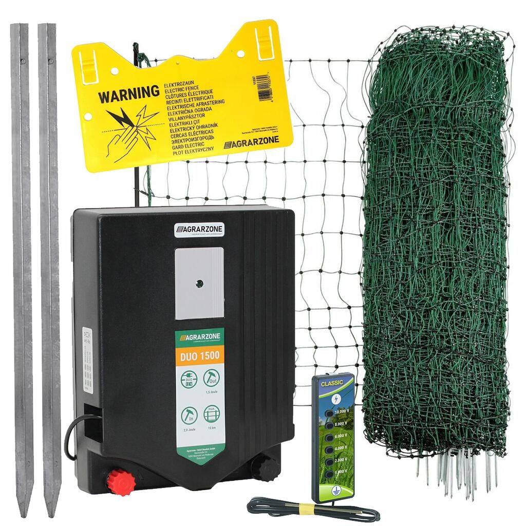 Agrarzone baromfi villanypásztor készlet DUO 1500 12V/230V, 2J, háló 50m x 112cm, zöld