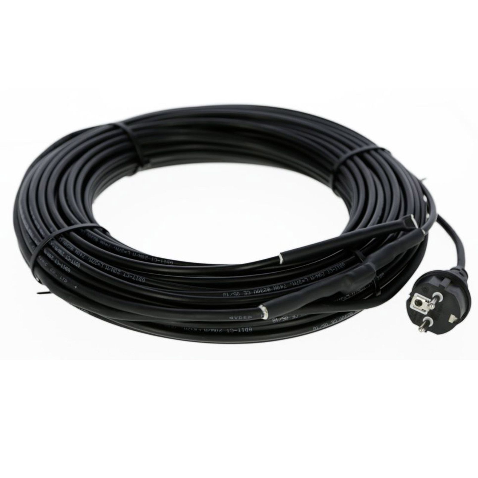 Az ereszcsatornákhoz és csővezetékekhez kifejlesztett dugaszolható fűtőkábel megfelel az IEC60800:2009 szerinti M2 szilárdsági osztály követelményeinek, hogy az ereszcsatornákat és csővezetékeket biztonságosan fagymentesen tartsa. A méterenként 20 wattos fűtőteljesítménynek köszönhetően a fűtőkábel még nagyon alacsony hőmérsékleten is fagymentesen tartja az ereszcsatornákat, lefolyócsöveket és csővezetékeket. A beépített hőmérsékletkapcsoló megbízhatóan bekapcsolja a fűtőkábelt +3 °C hőmérsékleten és kikapcsolja +12 °C hőmérsékleten.