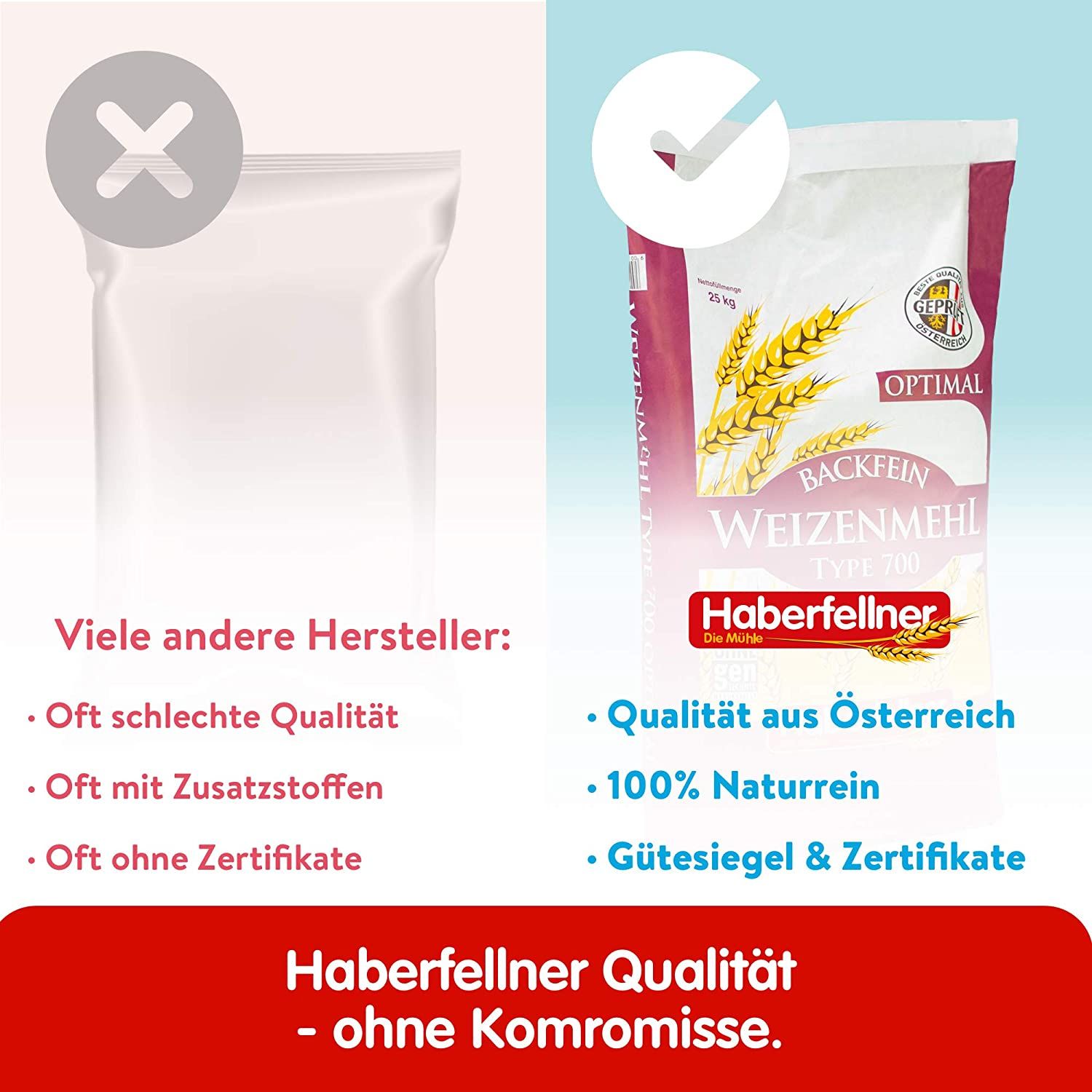 A Haberfellner 550 típusú (tipizálás Németország) / W 700 (tipizálás Ausztria) optimális búzaliszt nagyon finomszemcsés, és népszerű a főző- és sütőkonyhában aízletes kenyér, sütemények, valamint tészta-, élesztő- és rétes tészták készítéséhez. Ez a sütőliszt különösen alkalmas élesztős tésztás pékáruk készítésére és mártások sűrítésére is. Az 550 / W 700 optimális típusú búzaliszt ásványi anyag tartalma magasabb, mint a 405 / W 480 típusú búzaliszté, ezért valamivel sötétebb is. A búzaliszthez kizárólag osztrák búzát használnak. A búza garantáltan GMO-mentes, és szigorúan ellenőrzött növényvédő szerekből készül.