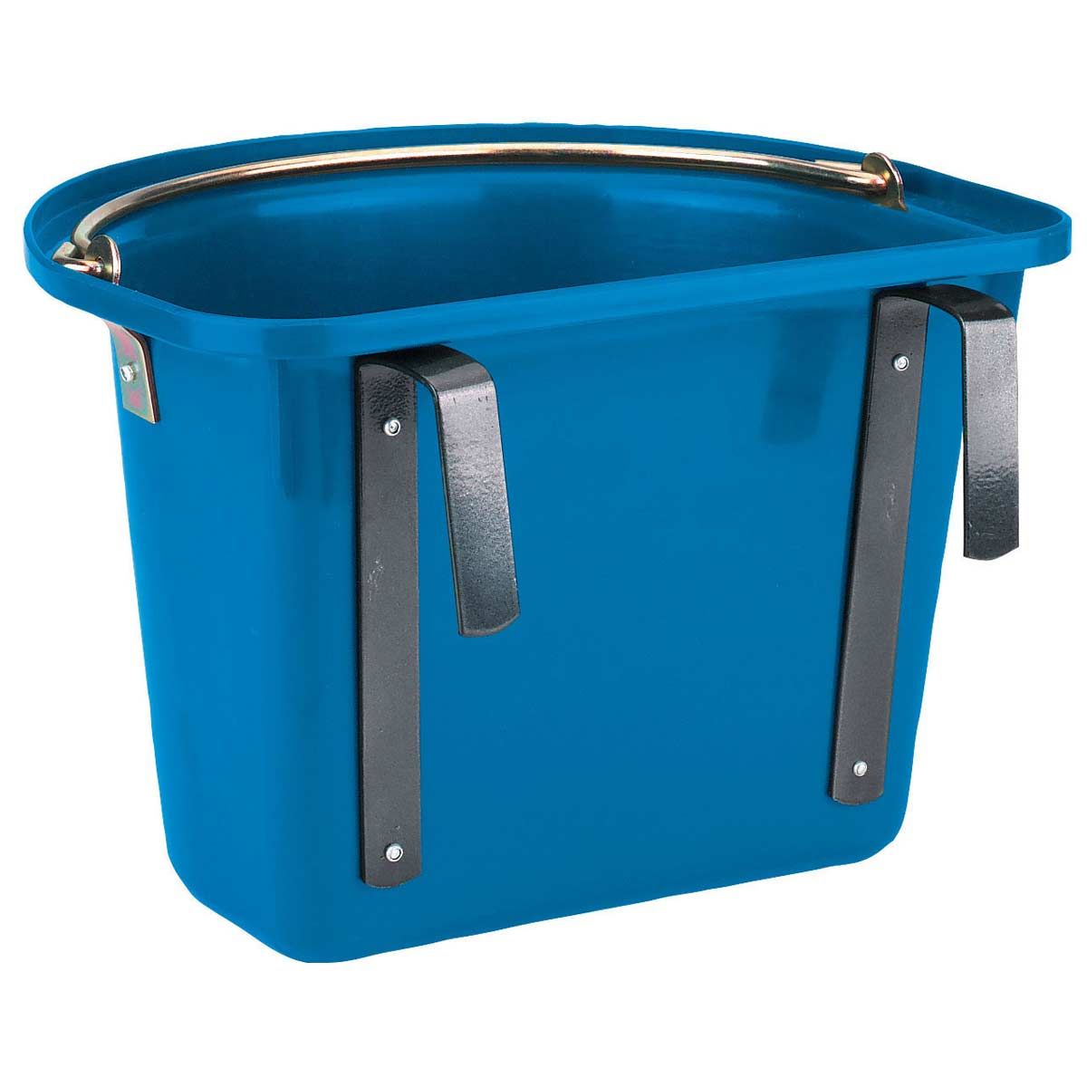 Ez a robusztus, fém konzolokkal ellátott etetővödör ideális a szállítójárművekbe vagy lóistállókba való felakasztáshoz. Az etetőtálca további fém hordozófogantyúval rendelkezik.
