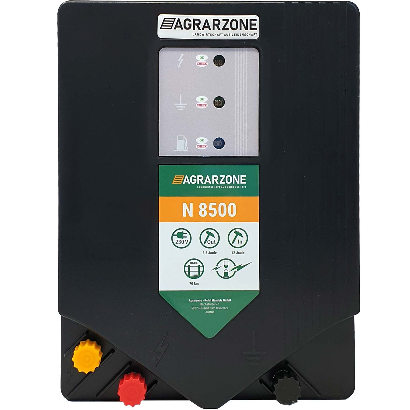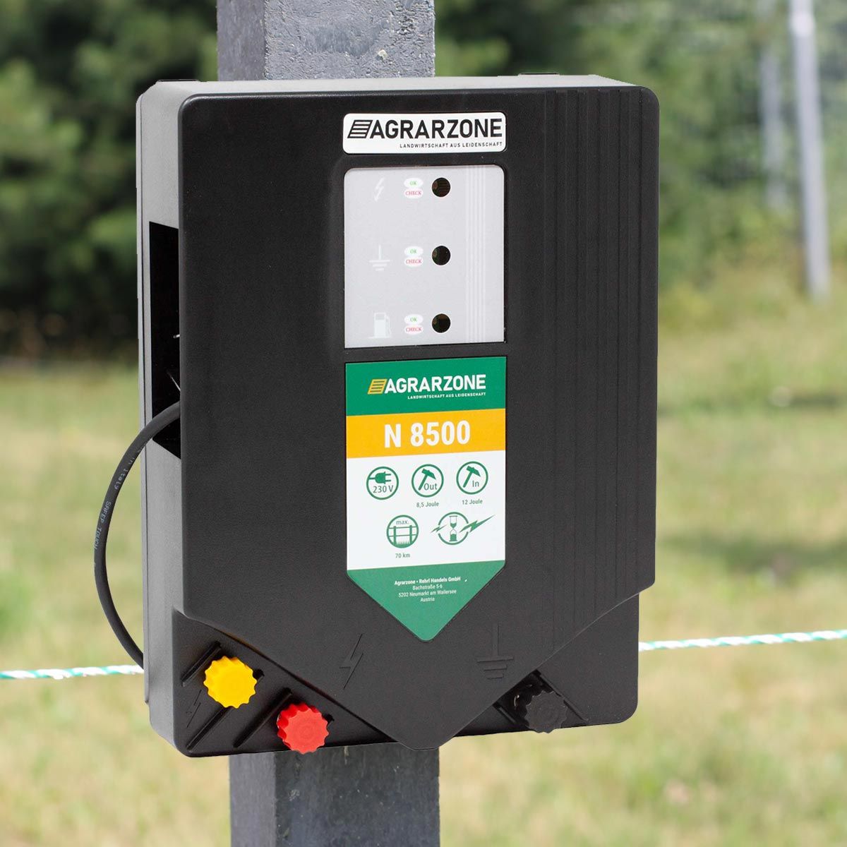 A nagy teljesítményű 230 voltos Agrarzone N 8500 villanypásztor készülék a kerítésrendszerek rendkívül széles skálájához használható. Akár szarvasmarha- vagy lótartáshoz, akár vadállatok távoltartására - a 12 joule maximális töltési energiával és 8,5 joule kisütési erővel rendelkező elektromos működtetésű készülék minden ma általánosan használt mérethez alkalmas. De nem csak a rendkívül egyszerű kezelés, hanem a kombinált optikai kerítésfeszültség és a LED-kijelzőn keresztül történő földszabályozás is az elektromos kerítés technika csúcscikkévé teszi a Agrarzone N 8500 villanypásztor készüléket, és így ideális a legelőkerítésekhez és az elektromos kerítésekhez.