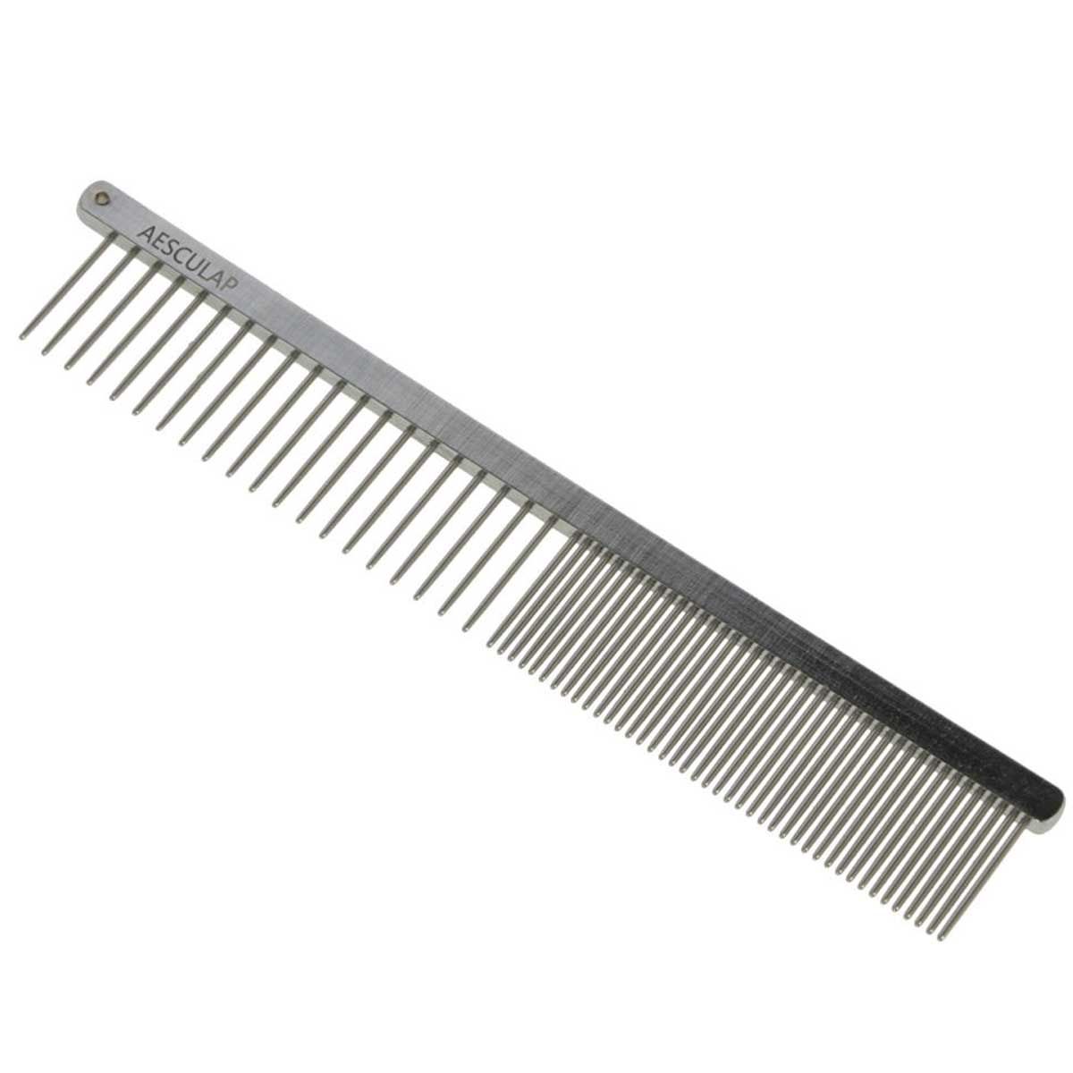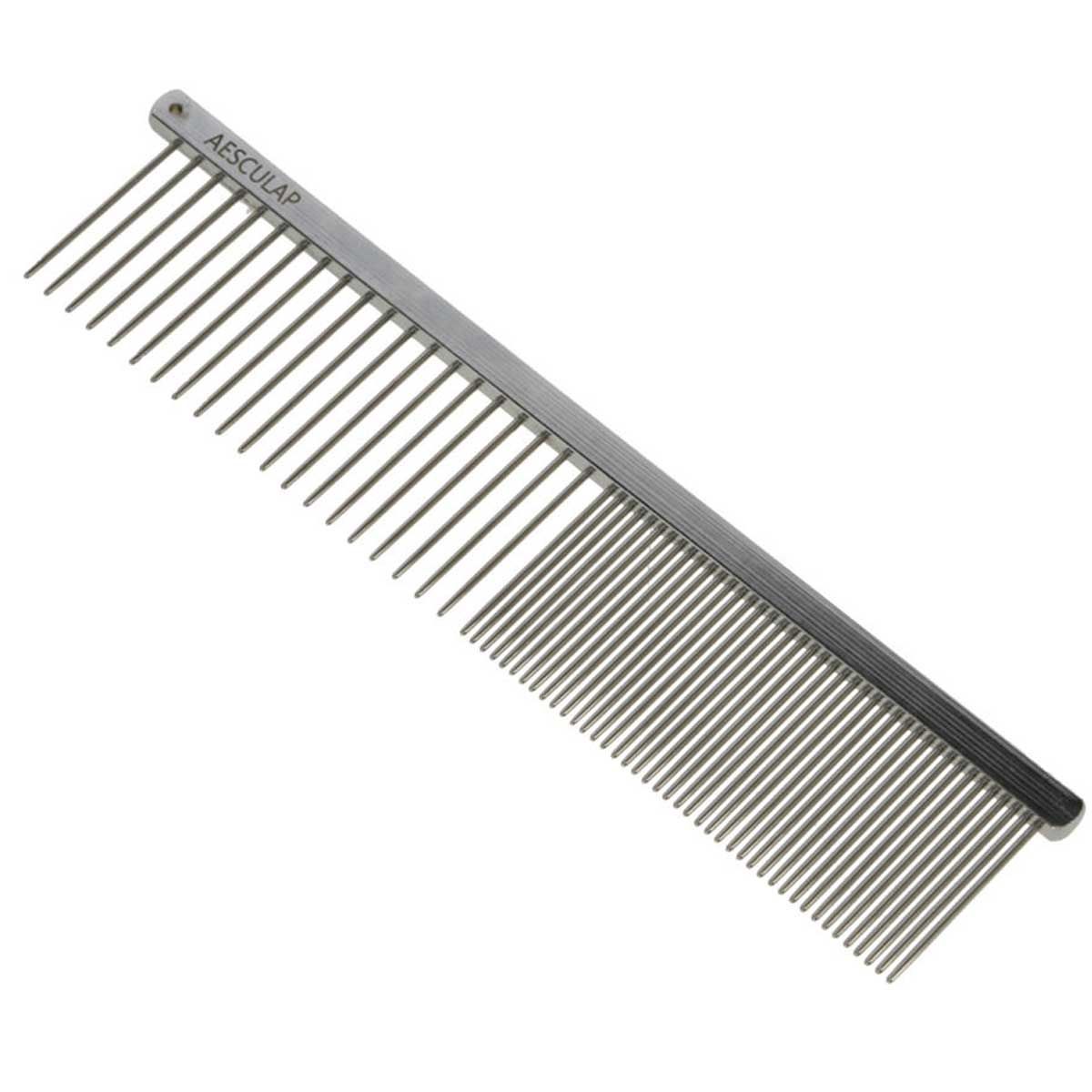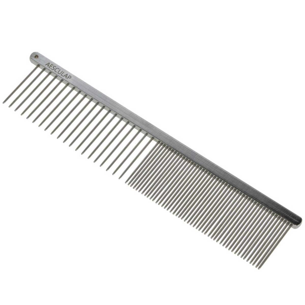 A szőrfésű tökéletesen alkalmas a szőrzet könnyű csomóinak és gubancainak kifésülésére és fellazítására, valamint a nyírásra való felkészüléshez és a nyírás után. Ez az Aesculap rozsdamentes acélból készült fésű minden méretű és szőrzetű kutya és macska számára alkalmas. A krómozásnak és a lekerekített fogaknak köszönhetően ez a fésű különösen kíméletes a szőrzethez.