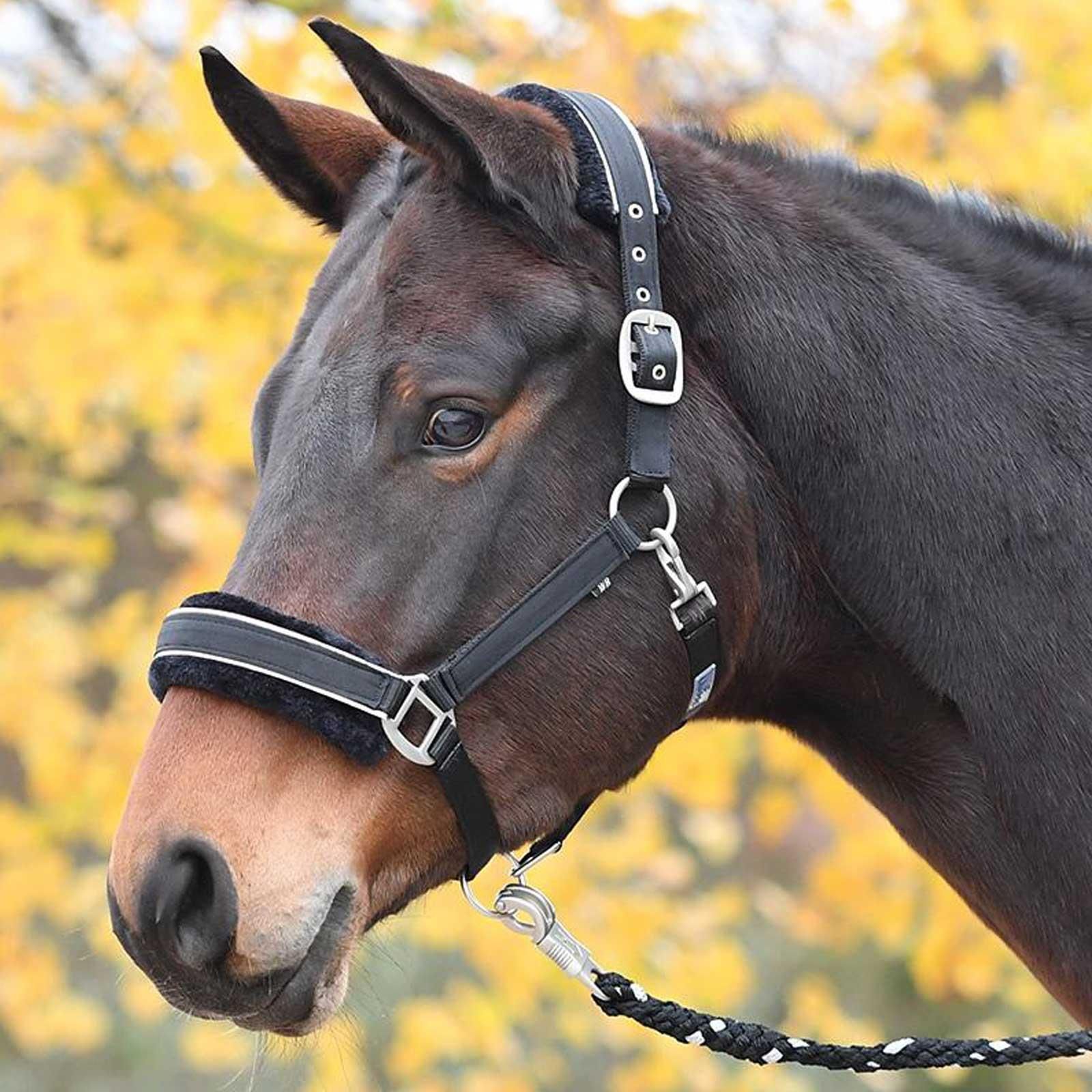 - Dupla pántos kantár vastag, puha gyapjú párnákkal az orr és a nyak területén.