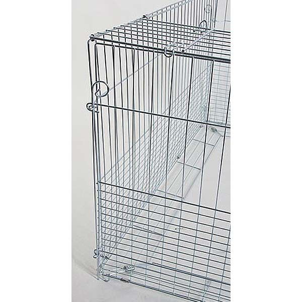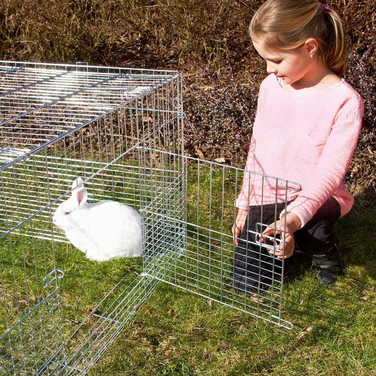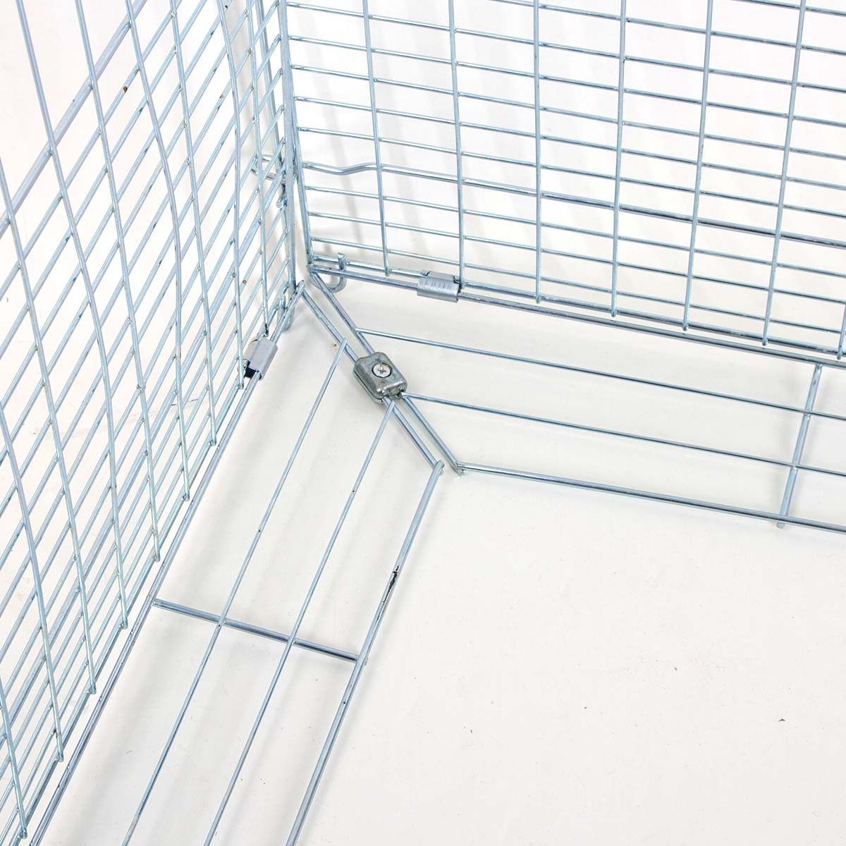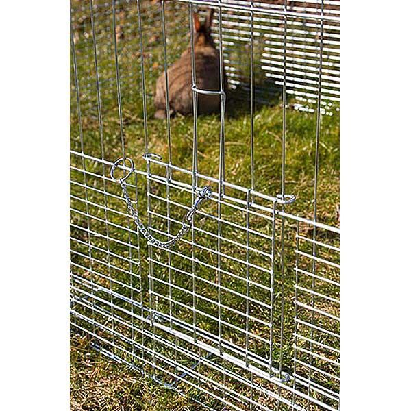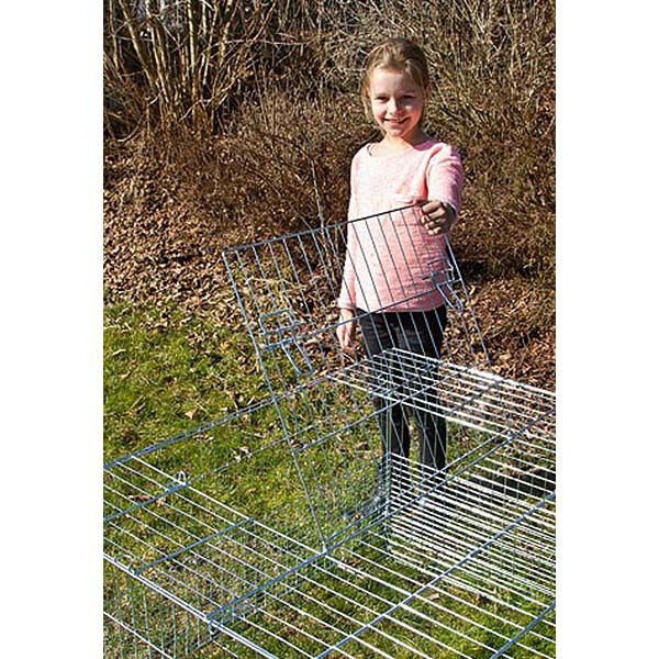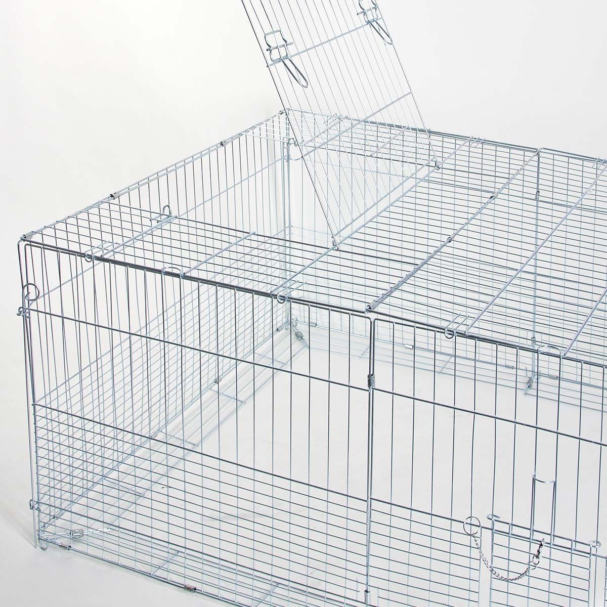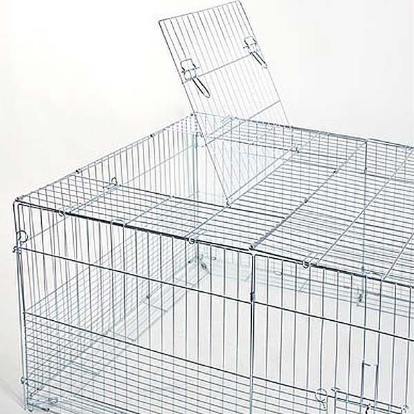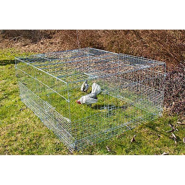 Ennél a szabadon tartott ketrecnél a rácsos fedél megakadályozza, hogy az állatok kiugorjanak, és optimális védelmet nyújt a hívatlan vendégekkel, például ragadozó madarakkal, macskákkal vagy martalócokkal szemben.