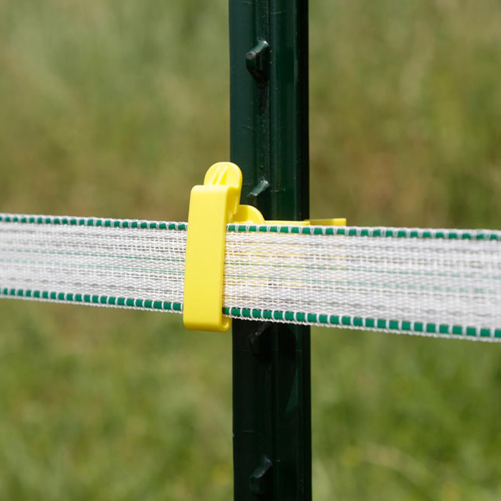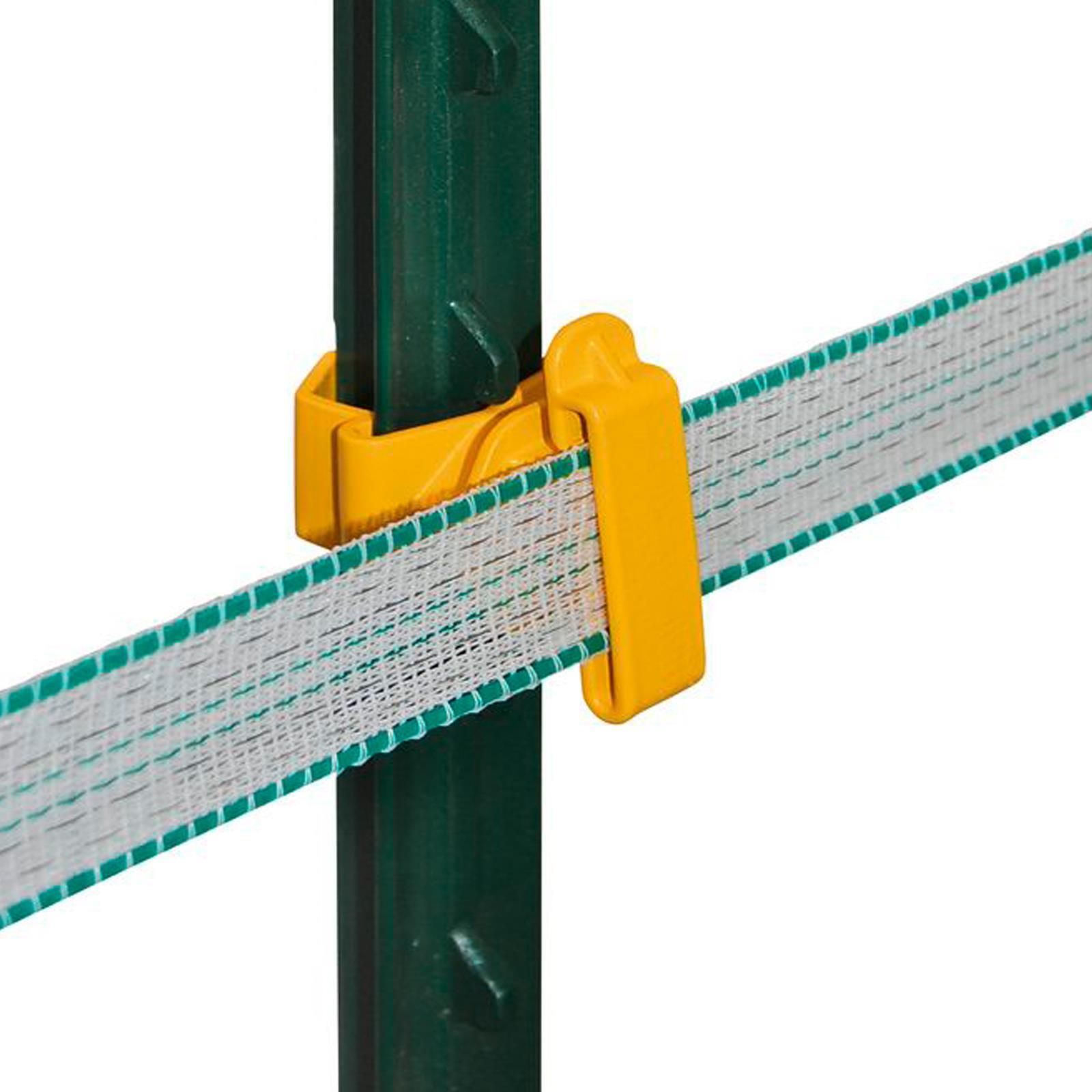 T-oszlop szalagszigetelő legelőkerítés szalagjaihoz 50 mm-ig, praktikus klipszes rögzítővel.