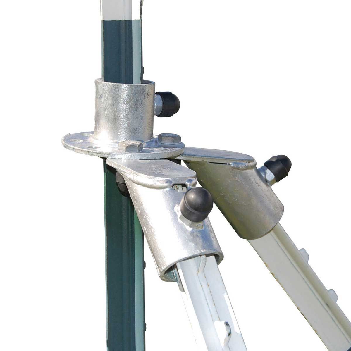 A saroktartó innovatív kialakítása lehetővé teszi, hogy a T-oszlopok bármilyen kívánt szögben elhelyezhetők legyenek. Ez különösen előnyös a hosszú, aszimmetrikus lefolyású legelők és nehéz talajviszonyok, például egyenetlen vagy nagyon puha talaj esetén. Ideális minden elterjedt T-oszlopos rendszerhez, mint ló-, juh- és szarvasmarha kerítés és még sok más!