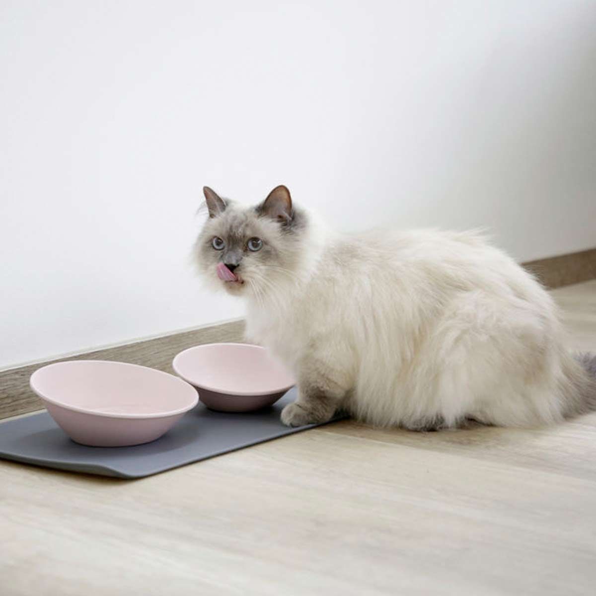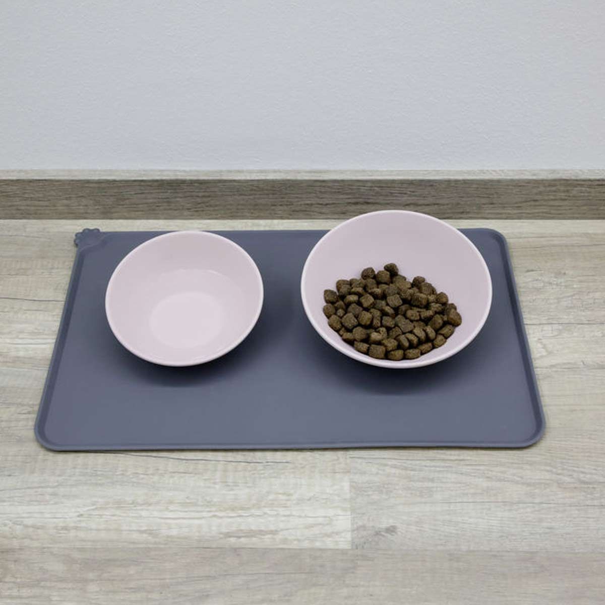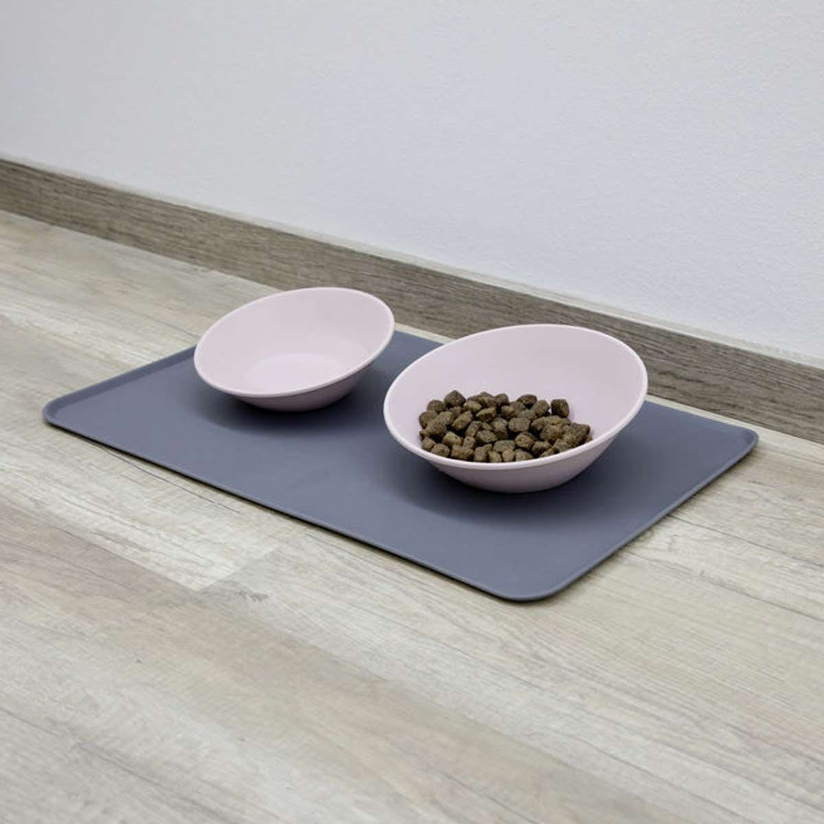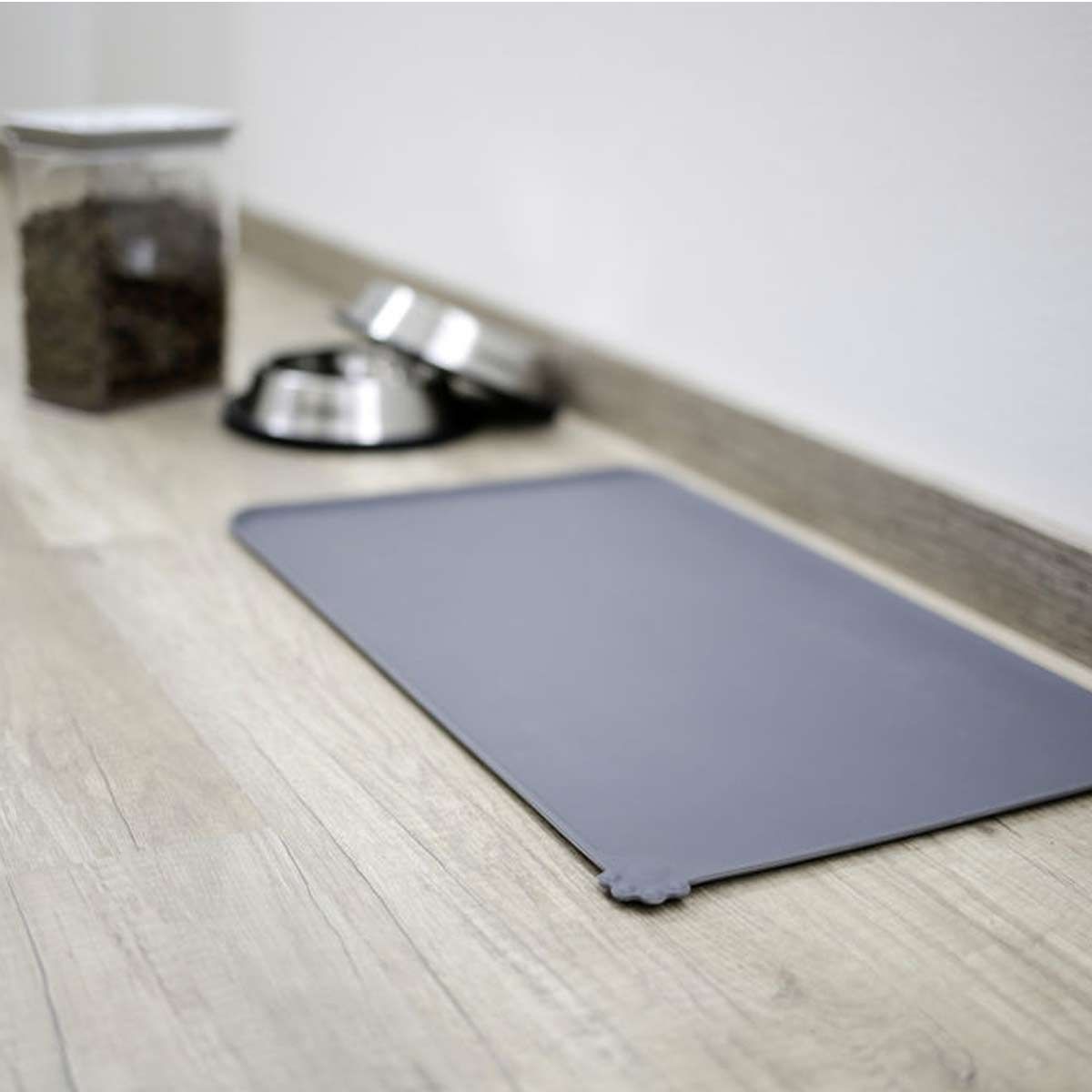 Ez a diszkrét tálalószőnyeg tisztán tartja a padlót, és stílusos étkezési helyet kínál kutyáknak és macskáknak. A sima szilikon felület időnként gyorsan letörölhető, így az etetőterület mindig tiszta és higiénikus marad. A csúszásmentes tálalátét élelmiszer-biztonságos szilikonból készült, és enyhén megemelt széle van, így nem kerülhet étel vagy víz a padlóra.