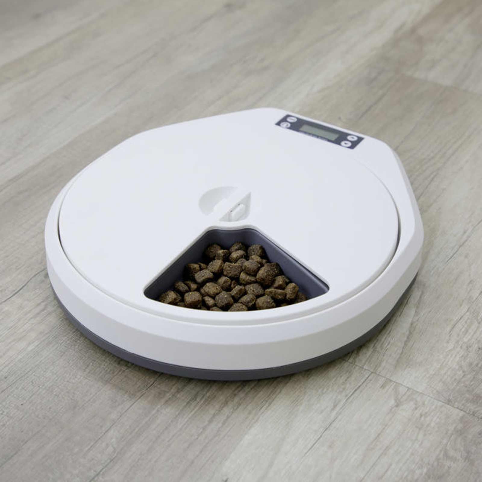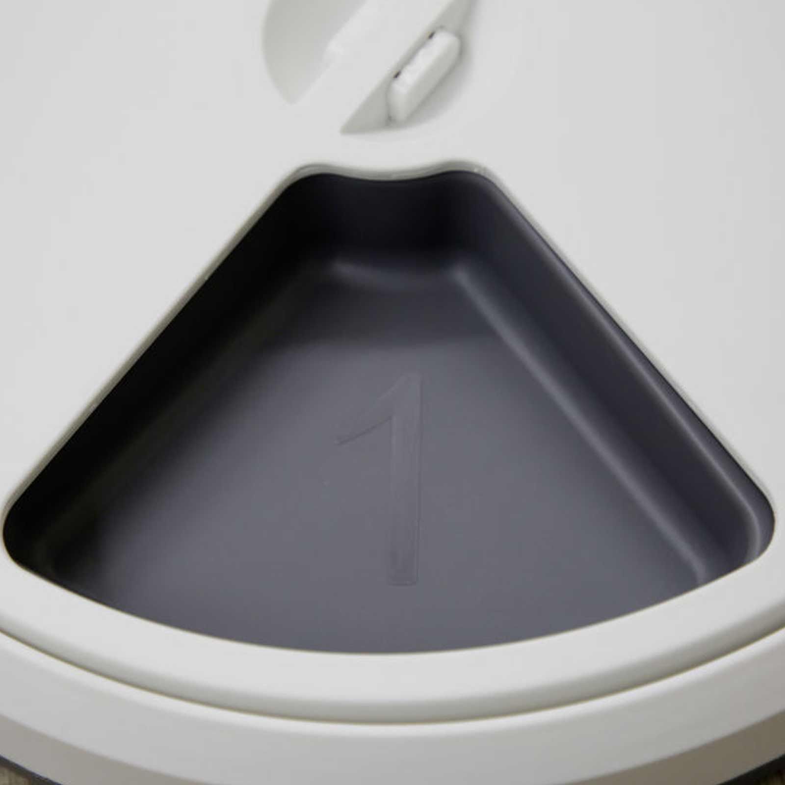 Állítsa be az elemmel működő időzítőt a kívánt időpontra, és hűséges barátja automatikusan friss táplálékot kap a megfelelő időben. Az ételeket öt könnyen tisztítható élelmiszerrekeszben tárolják, és egy forgó fedél felfedi.