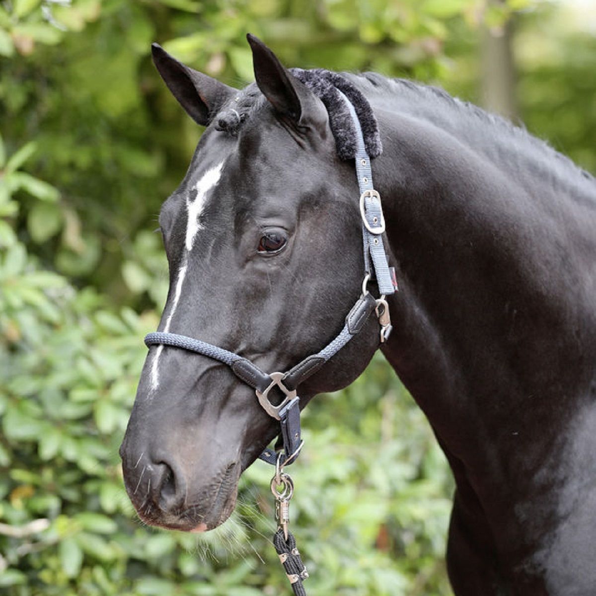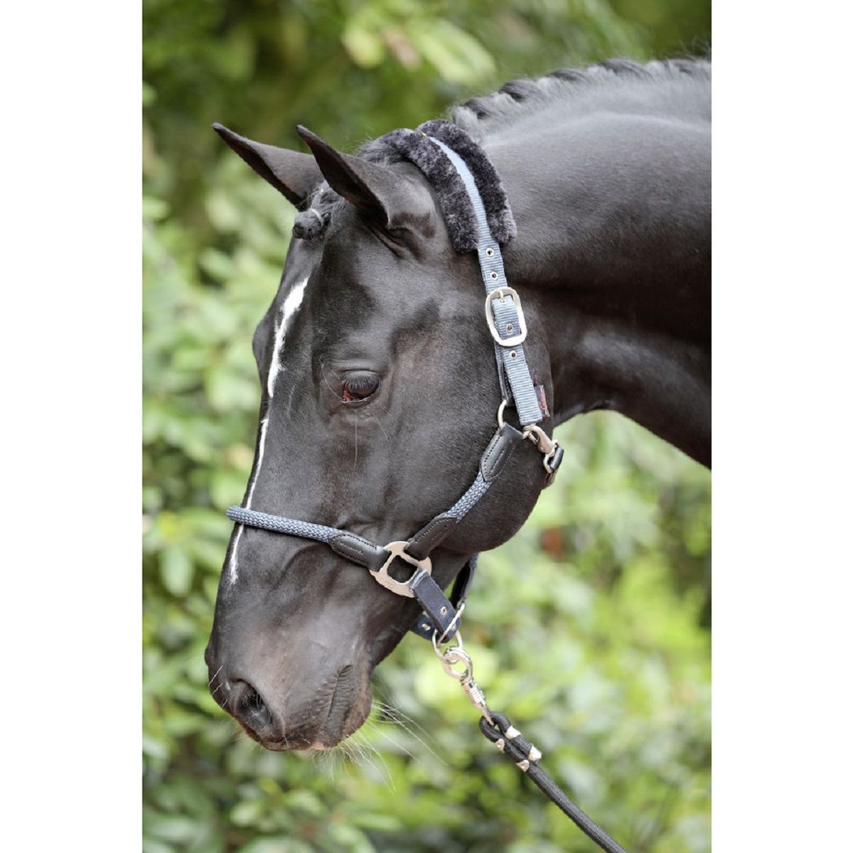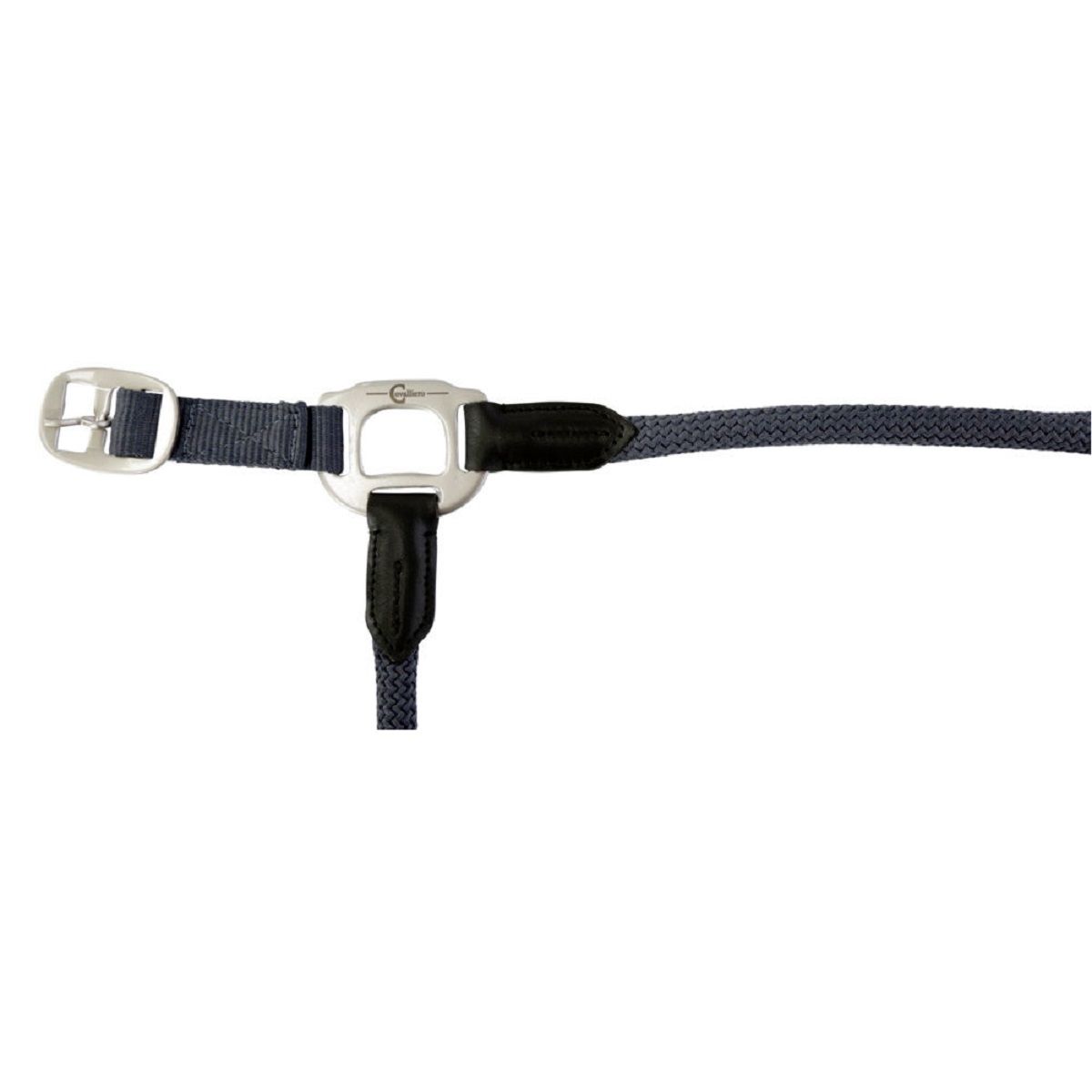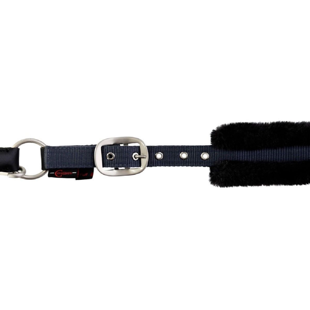 Kötőfék Cordano a Covalliero-tól vonzó kivitelben, kerek és lapos pántok kombinációjával, gyönyörű kék árnyalatban. A kopásálló anyag erős varrásokkal és masszív, mégis formás szerelvényekkel rendelkezik. Ezen kívül a nyakpánt szőtt szőrpárnával van ellátva, ezért kíméletes a ló érzékeny nyakához. Annak érdekében, hogy a kantár tökéletesen beállítható legyen, az orr és a nyakpánt csatokkal állítható. A kötőfék egy karabinerrel rögzíthető és oldható, így könnyen felvehető.