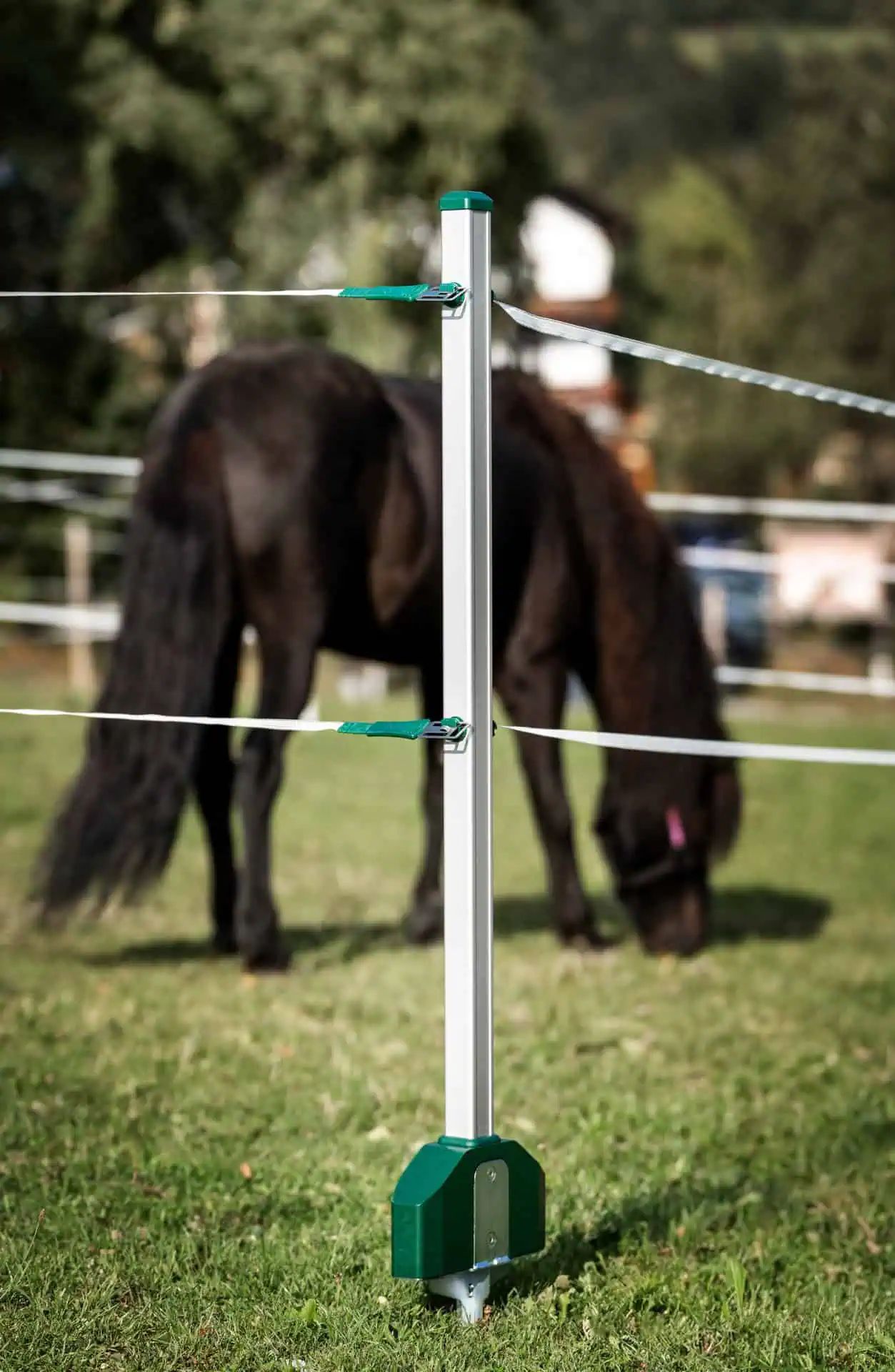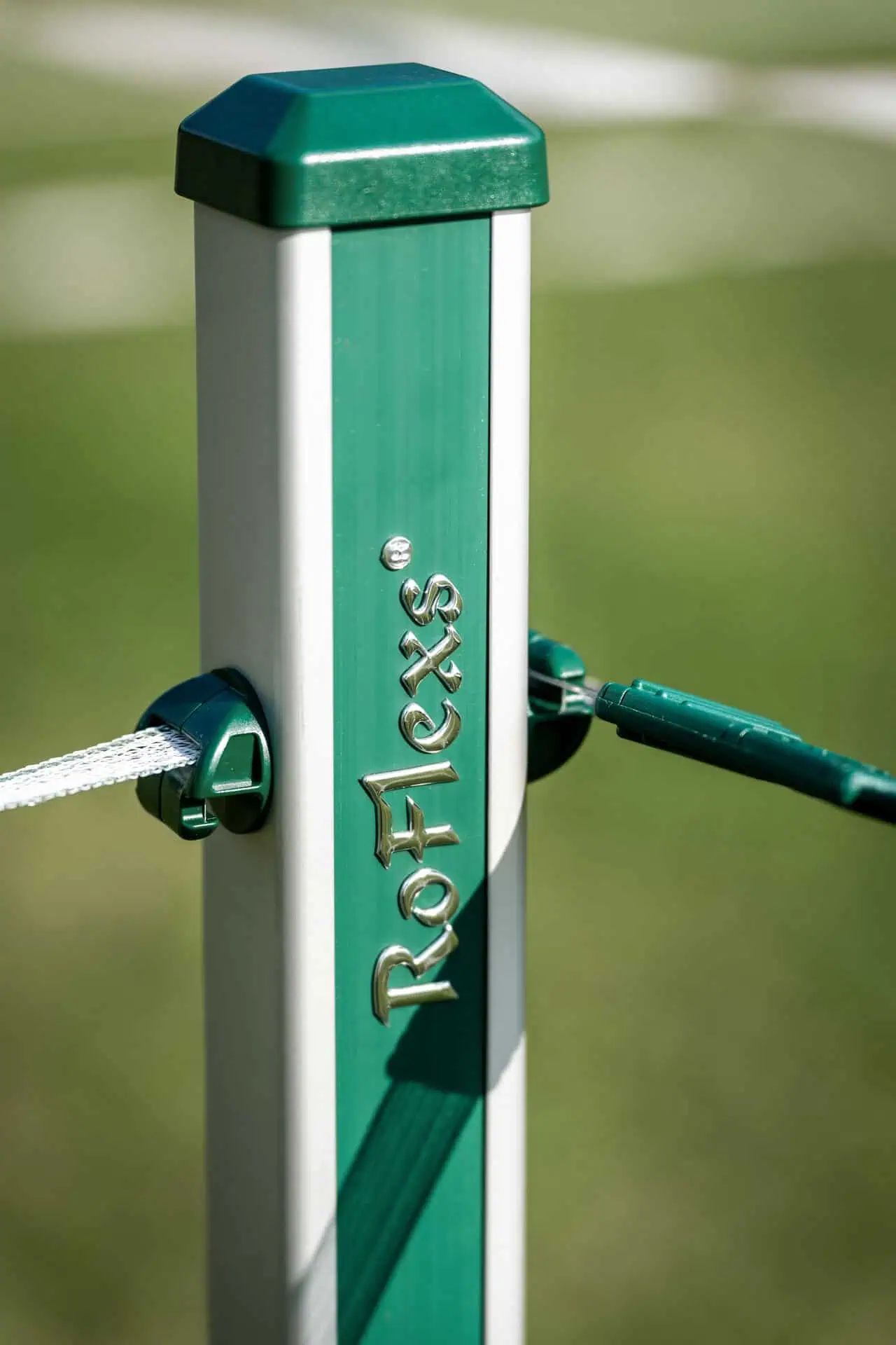 A RoFlexs biztonságos prémium kerítésrendszere jól látható 20 mm széles szalaggal, szalagbarát önfelhúzó rendszerrel és a sapkafeszítés belső átvezetésével van felszerelve. A megerősített, finomított alumíniumprofilból (eloxált) készült erős tekercselőrendszer és a stabil, horganyzott acél földtüske révén a kerítésrendszer abszolút robusztus. A kerítésszalag, valamint az ütésálló, kiváló minőségű műanyag alkatrészek UV-stabilak. Ezen kívül a gyártó 2 év garanciát és további 5 év garanciát vállal a szalagvisszahúzó rugókra.