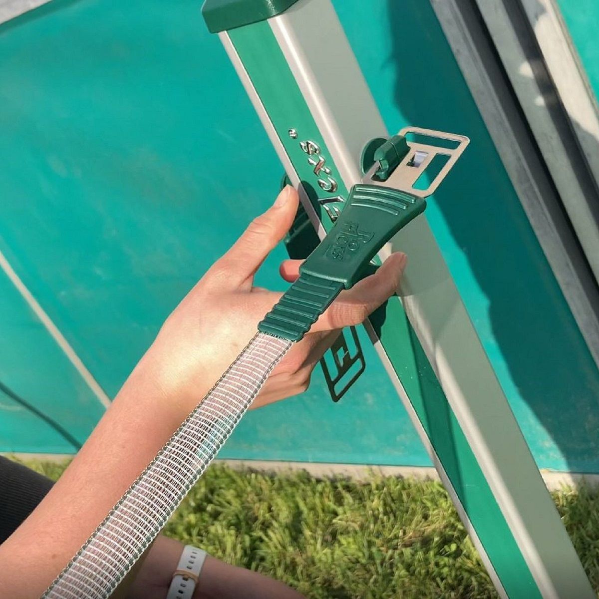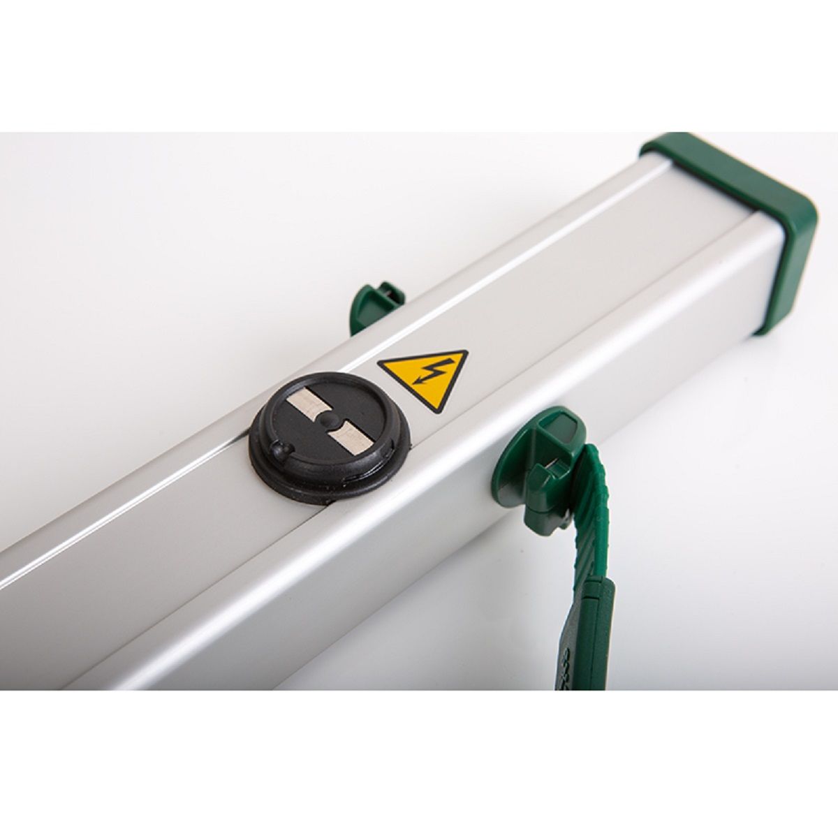 A használatra kész kerítéskészlet tartalmaz egy kerítésegységet a 20 mm széles, UV-stabil kerítésszalag villamosításához. A szalagvédő önfelhúzó rendszer biztosítja a nagy teljesítményű felhúzórendszer hosszú élettartamát. A megerősített alumíniumprofil, az ütésálló, kiváló minőségű műanyag alkatrészek és a horganyzott földtüske a kerítésrendszert robosztussá és stabillá teszi. És ami a legjobb - a rendszer kevesebb mint 3 perc alatt felállítható és leszerelhető! Mindezek a tulajdonságok a RoFlexs kerítésrendszert a legmozgékonyabb és legrugalmasabb, független kerítésszalag-tekercseléssel rendelkező villanypásztor kerítéssé teszik. A gyártó 2 év garanciát és 5 év garanciát vállal a behúzórugókra.