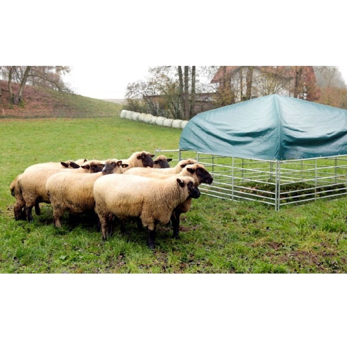 A legelősátor komplett készlet egyszerű, szerszám nélküli összeszereléshez, juhok és kecskék számára, kiváló minőségű, tűzihorganyzott panelekkel.