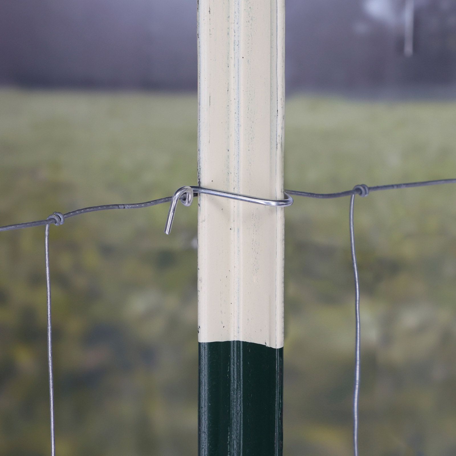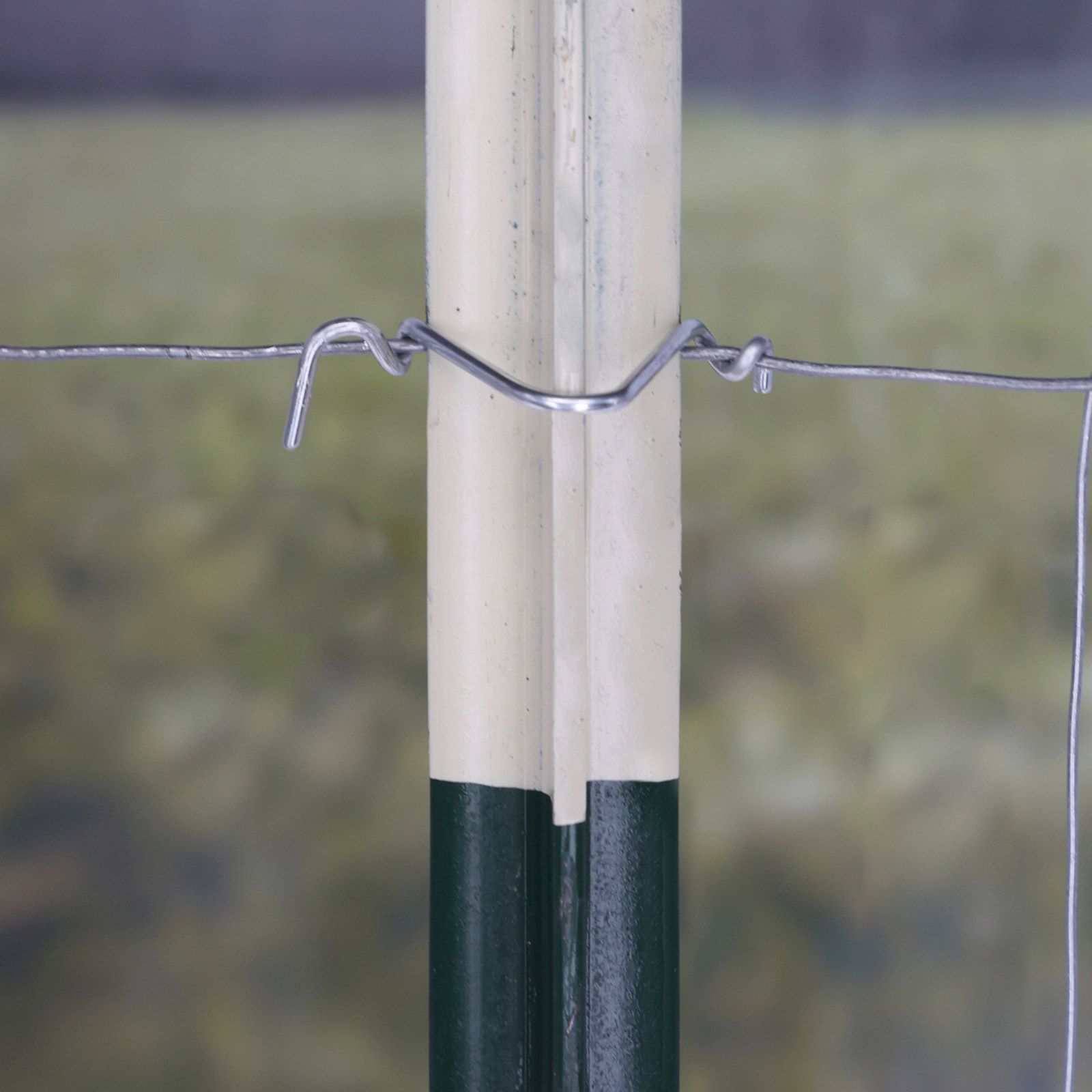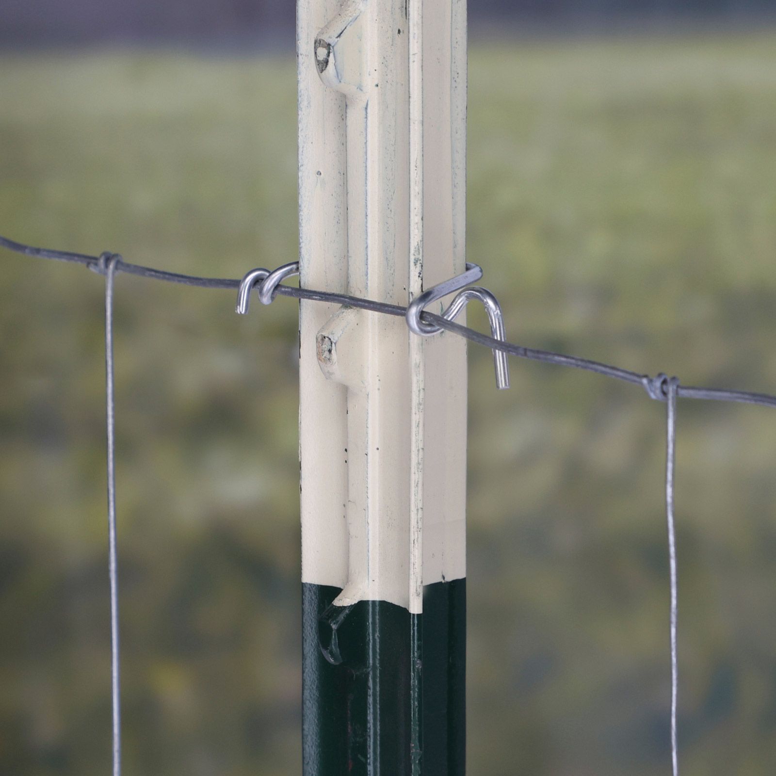 Ezzel a 25 darab rögzítőkapoccsal szuper egyszerűen rögzíthet drótot, szarvaskerítést vagy csomózott hálót a T-oszlophoz. A drótkapcsok minden kereskedelmi forgalomban kapható T-oszlophoz, valamint kerti és dróthálós kerítéshez alkalmasak. A gyors és egyszerű felszerelés úgy lehetséges, hogy a kapcsokat az oszlopra helyezi, majd a végeket fogó vagy csavarhúzó segítségével meghajlítja. A robusztus, horganyzott fémnek köszönhetően a T-oszlop kapcsok nagy tartóssággal rendelkeznek.