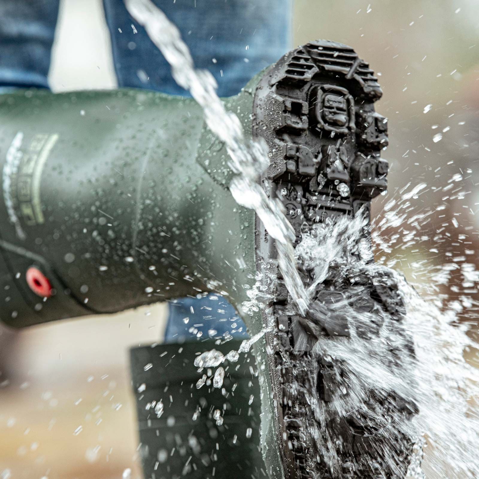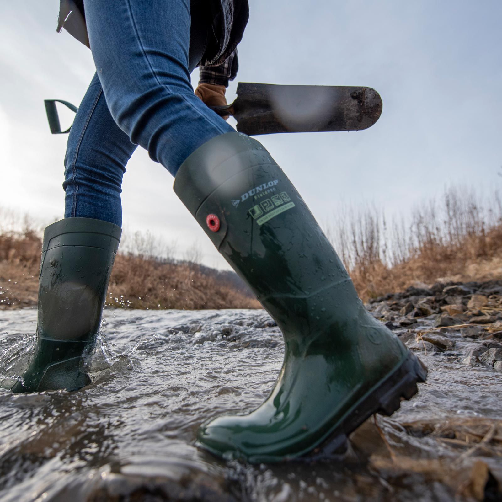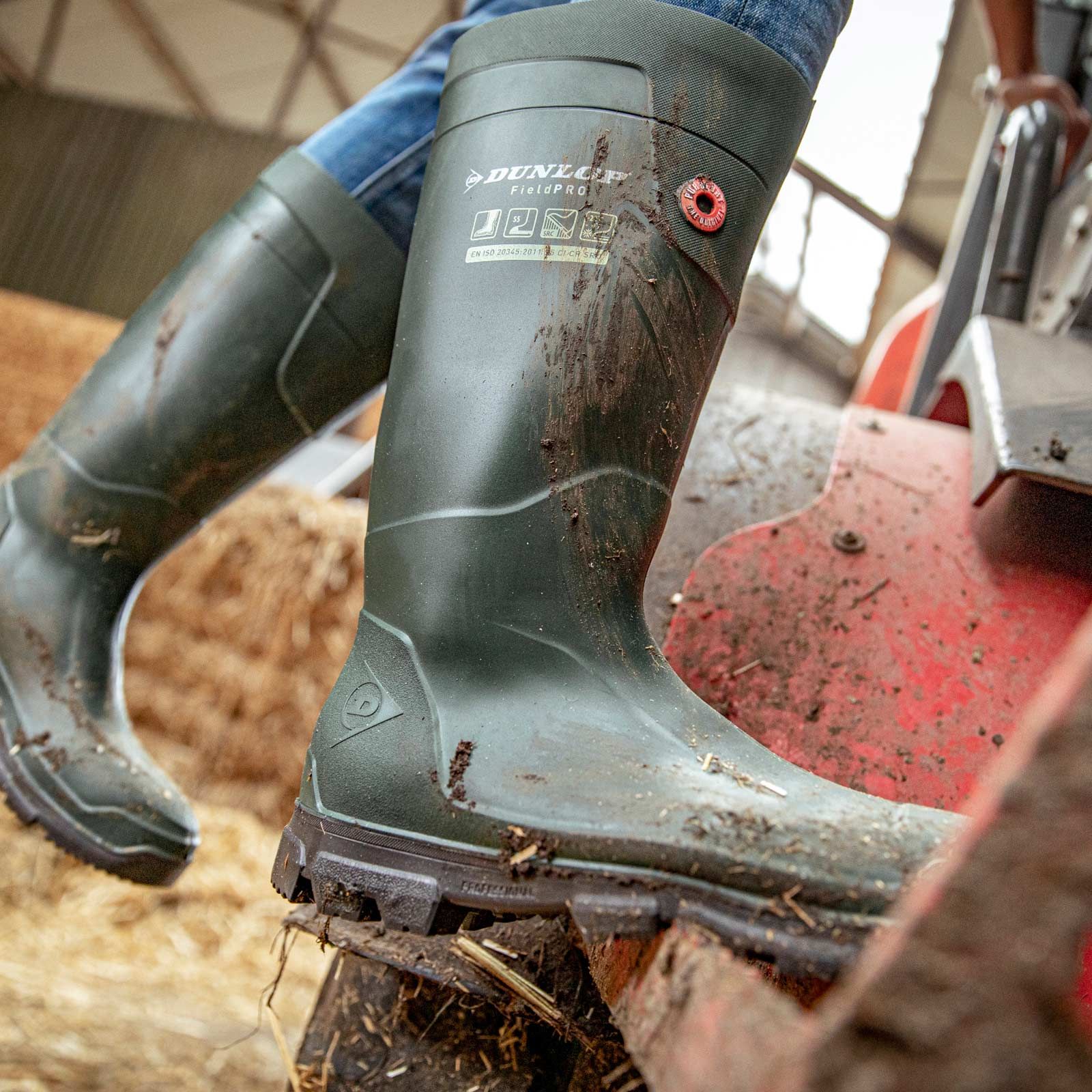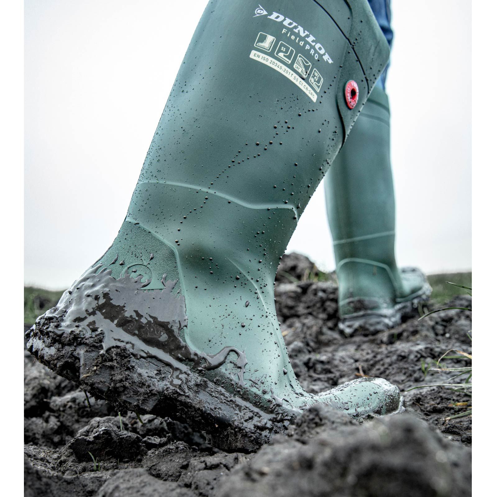 A Dunlop Purofort FieldPRO biztonsági gumicsizma könnyű és összetéveszthetetlenül kényelmes tapintásával nyűgöz le a mezőgazdasági, erdészeti és ipari munkák során. A speciális Snug-Fit kialakításnak köszönhetően ez a biztonsági bakancs szinte olyan kényelmes, mint egy tornacipő, és megakadályozza a sarok csúszását. Az innovatív Purofort anyagtechnológiának köszönhetően a Dunlop Purofort FieldPRO nagyon könnyű és rugalmas, anélkül, hogy a biztonság rovására menne. A profilozott külső talp kiváló tapadást garantál még sáros és nedves terepen is. A beépített külső talpcsatornák elvezetik a sarat és a vizet a környezetbe, így minden lépés biztonságot nyújt. Az acél középtalp áthatolásvédőként szolgál olyan terepen, ahol hegyes vagy éles tárgyak jelentenek veszélyt. Hideg napokon vagy hideg környezetben a -20 °C-ig tartó hőszigetelés hatékony védelmet nyújt a hideg ellen.