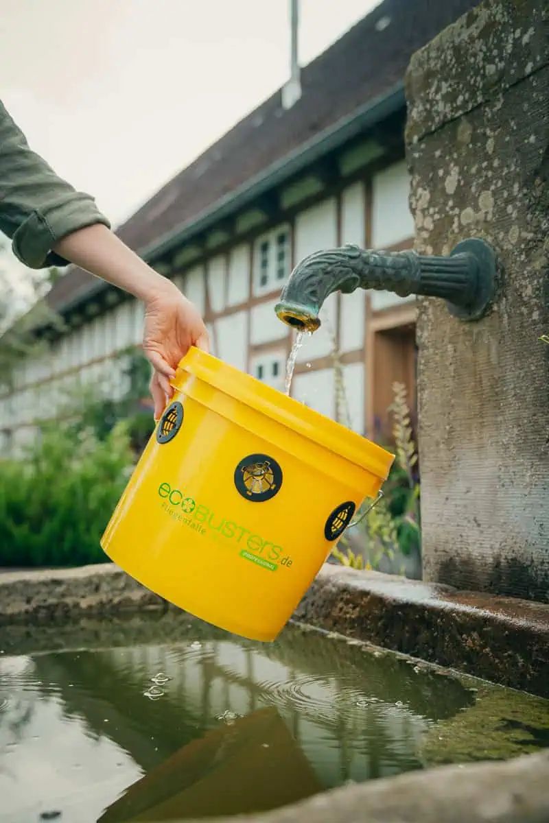 1. Öntse a csalogatószert a sárga vödörbe, és oldja fel 6 liter langyos vízzel, majd zárja le a vödröt az egyedi csavaros kupakkal.