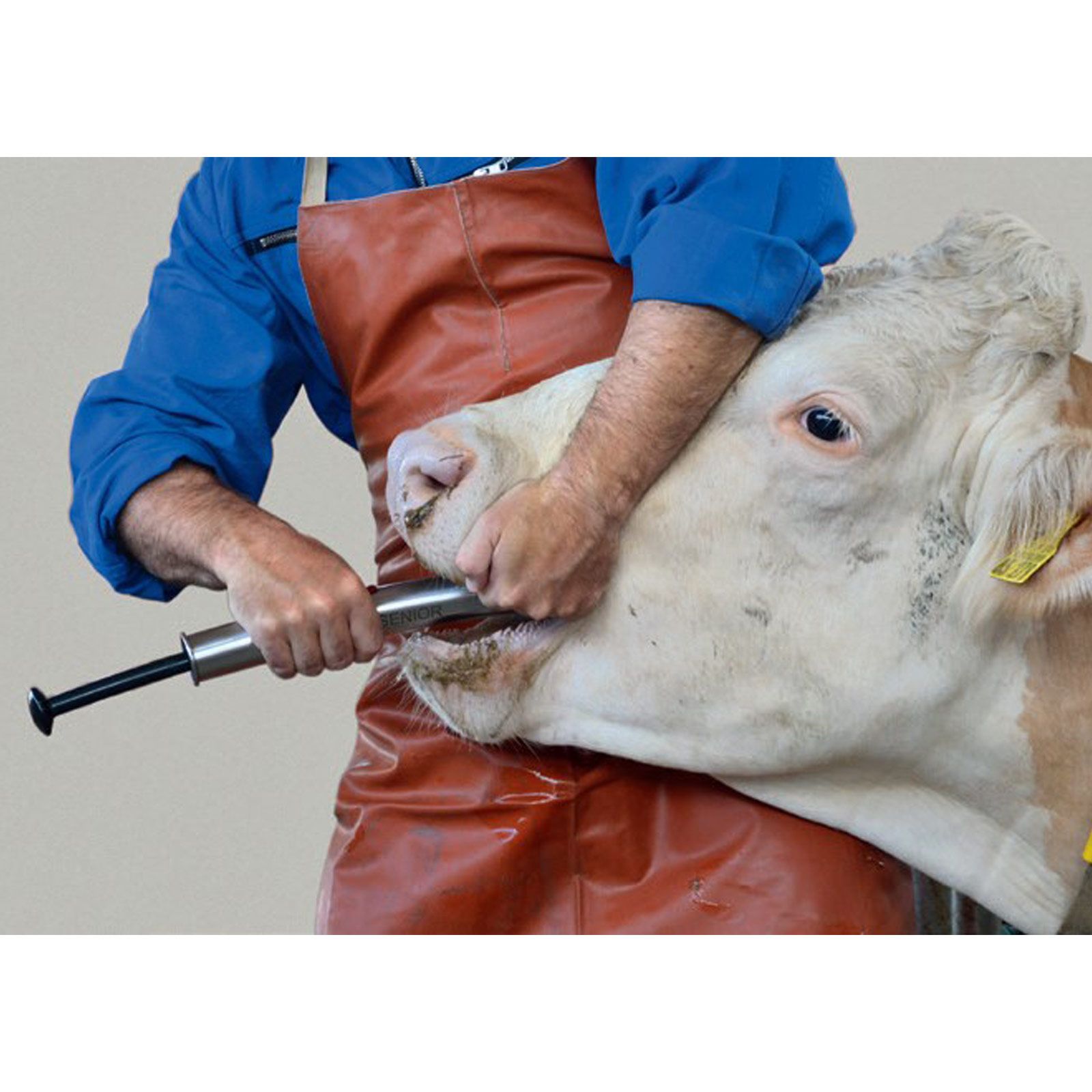 A SENIOR tabletta beadó a Vuxxx minőségi márkától, amelyet arra fejlesztettek ki, hogy kíméletesen és egyszerűen adagolja a tablettákat a teheneknek. A praktikus tablettaadagolóval gyengéden és természetesen juttathatja be a pirulákat és tablettákat a tejelő tehenek nyelőcsövén keresztül. A SENIOR ergonomikusan ívelt, mint a borjú száján keresztül a nyelőcsőbe vezető út. A bevezető eszköz vége lekerekített, hogy a sérülésveszélyt minimálisra csökkentse. Más etetőkhöz képest a SENIOR hihetetlenül könnyen kezelhető. Rozsdamentes acélcsőből és műanyag dugattyúból készült, így garantált a hosszú élettartam. A tolókészülék könnyen tisztítható. Egyszerűen öblítse le forró folyóvíz alatt, és máris úgy néz ki, mintha új lenne.