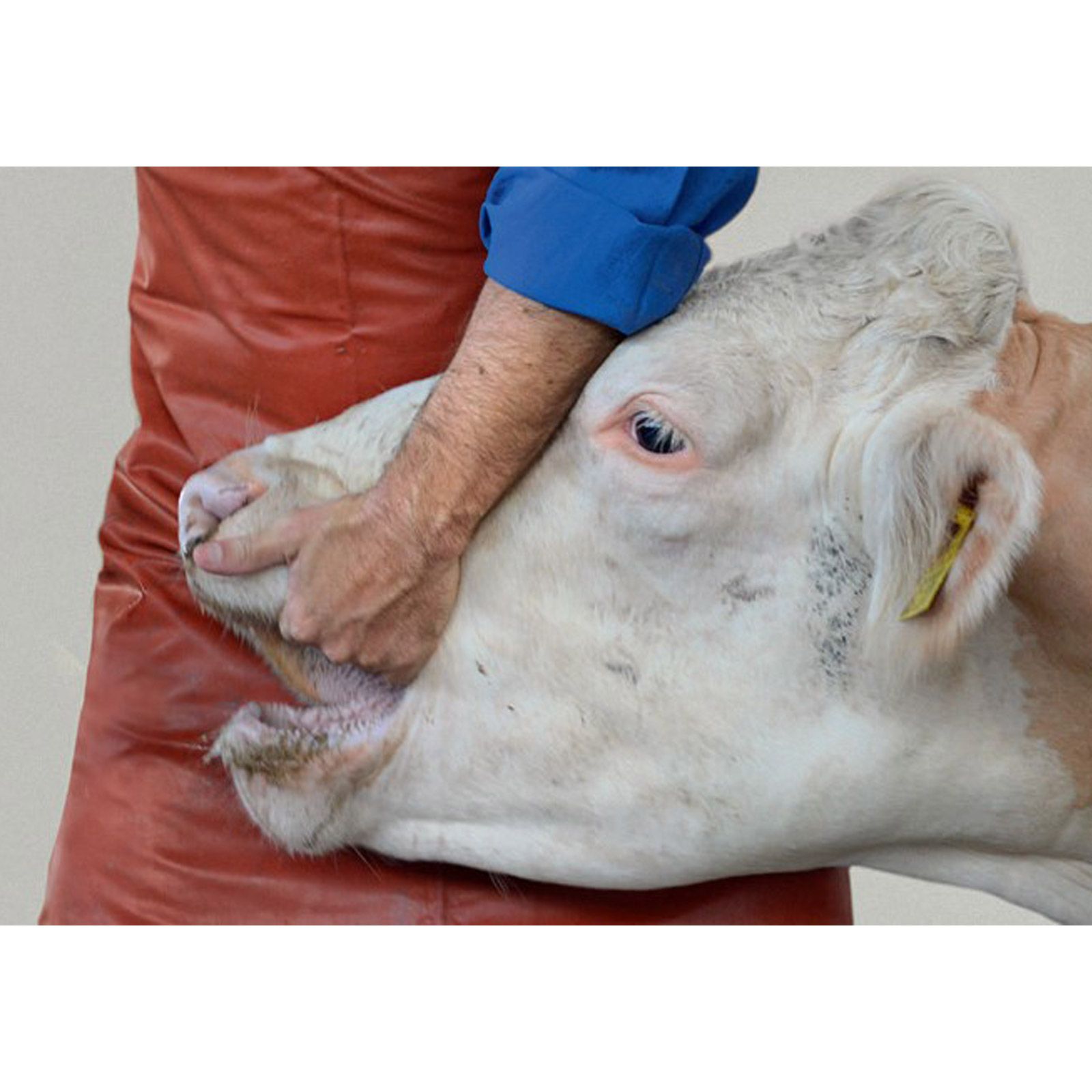 3. Csiklandozzuk a szájpadlást, amíg a borjú önállóan kinyitja a száját.