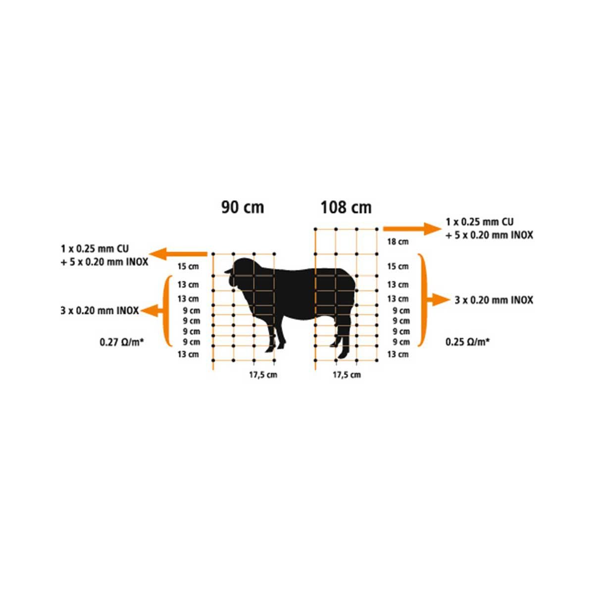 - Magasság 90 cm (9 vízszintes szál) vagy 108 cm (10 vízszintes szál)