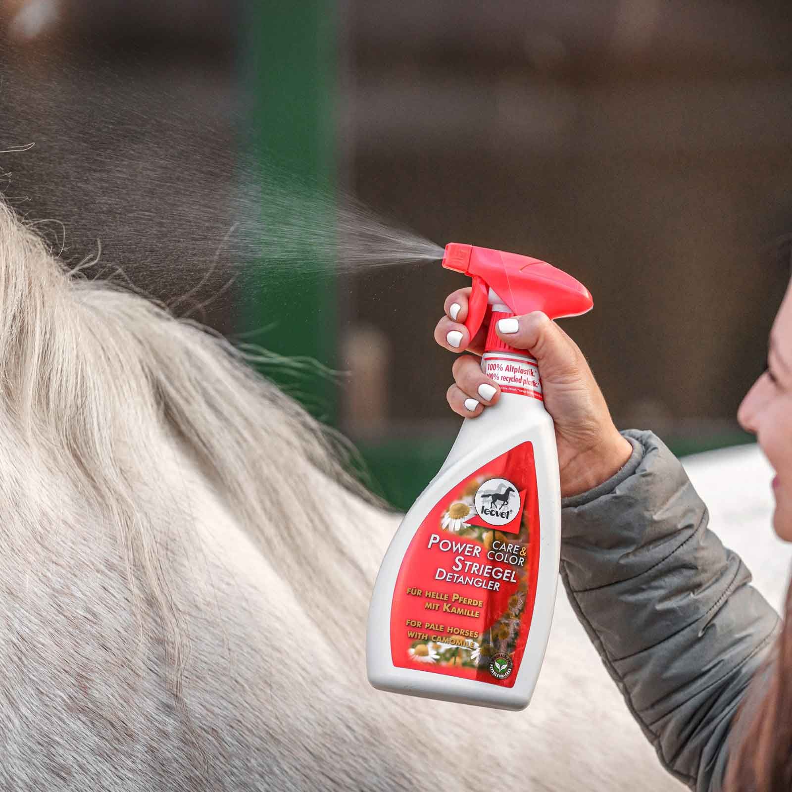 A Leovet Power kamillás sörény spray nagy volument ad, és biztosítja a sörény és a farok gyors kifésülhetőségét. A római kamilla fényes színreflexeket ad a világos szőrzetnek. A benne lévő bio-kénes folyadék ellensúlyozza a viszketést, és ismert a bőrre gyakorolt pozitív hatásáról. Az UV-szűrők védik a szőrzetet, a sörényt és a farkat a kifakulástól. A Leovet Power sörényspray további enyhe hatással rendelkezik a legyek és rovarok ellen.