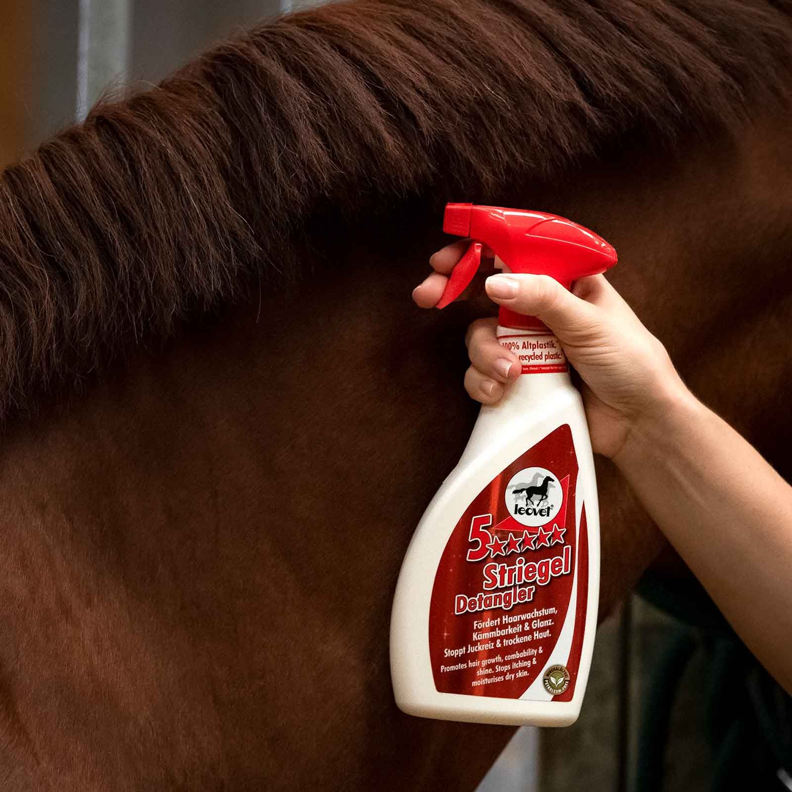 A Leovet 5-Star sörény spray összetételének köszönhetően számos előnnyel rendelkezik. Az arginin elősegíti a sörény növekedését, mint alapvető sörény ápoló tápanyag. A benne lévő pentavitin szabályozza a bőr és a sörény nedvességtartalmát, megszünteti a viszketést és enyhíti a bőrirritációkat. A B5 provitamin (panthenol) javítja a bőr és a hosszú szőrzet nedvességtartalmát, valamint fényt és rugalmasságot kölcsönöz. A Leovet 5 csillagos sörény spray napokig védelmet nyújt a por és a szennyeződések ellen.