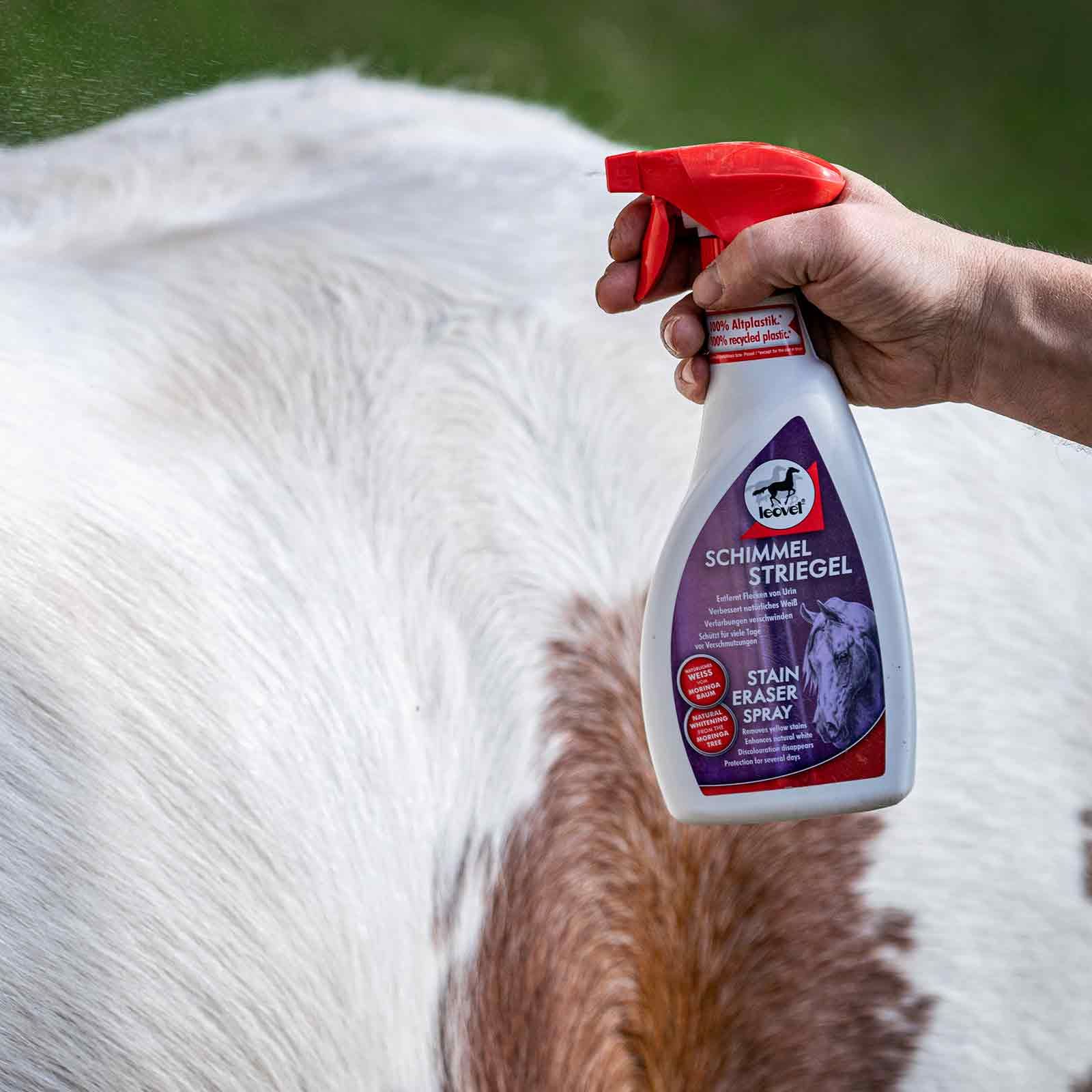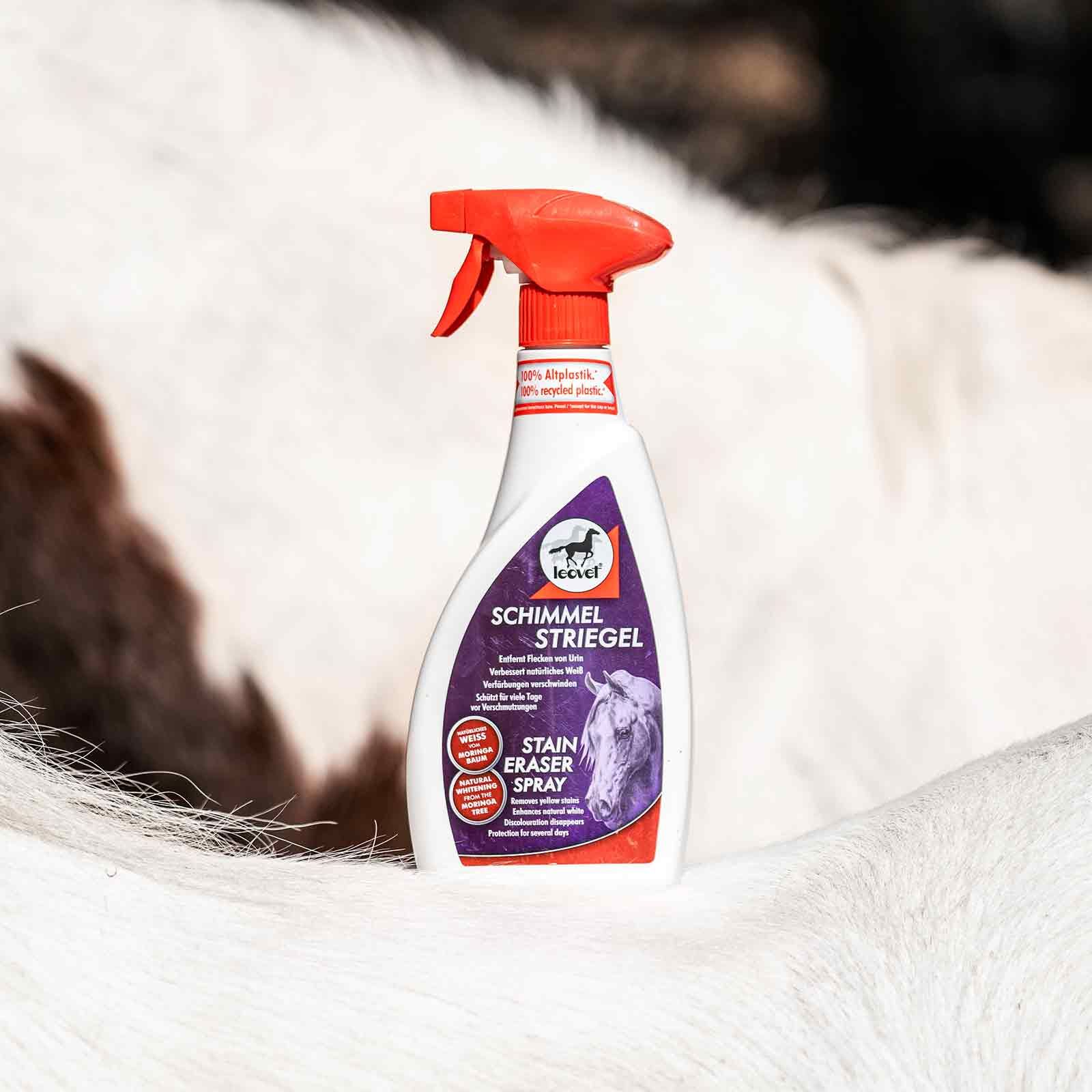 A Leovet folttisztító spray közvetlenül a vizeletből, trágyából vagy fűből származó makacs foltokra permetezhető. Rövid idő után a szennyeződés könnyen lekefélhető a szőrzetről, vagy törölközővel ledörzsölhető. Az elszíneződés eltűnik, és újra tiszta fehér, ragyogó hatású lesz. A moringa magok kíméletesen, fenntarthatóan és alaposan tisztítják a szőrt. A Moringa fából származó természetes fehérjék rendszeres használat mellett akár két napig is megakadályozzák a szennyeződések újbóli felhalmozódását és az elszíneződést.
