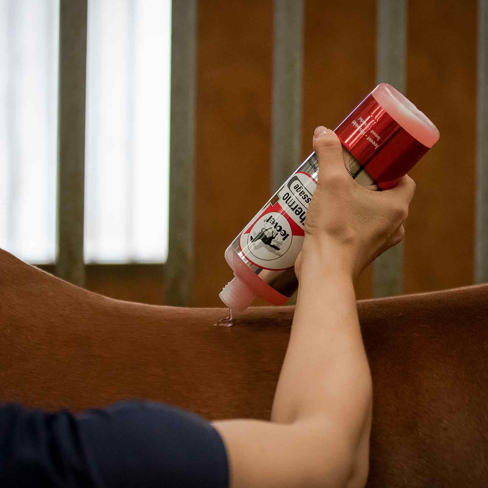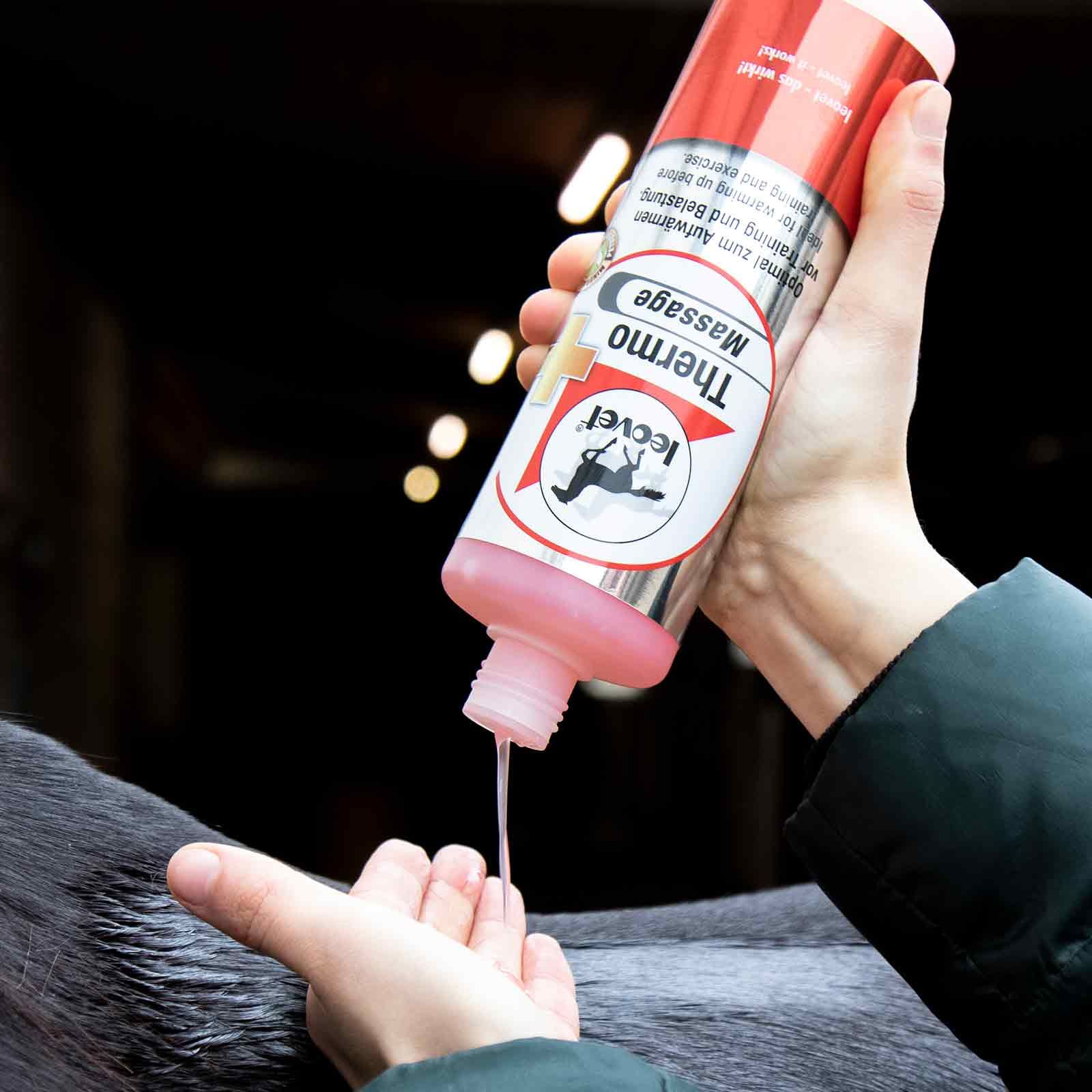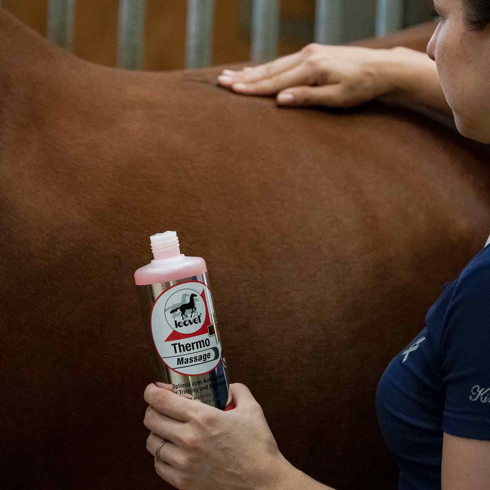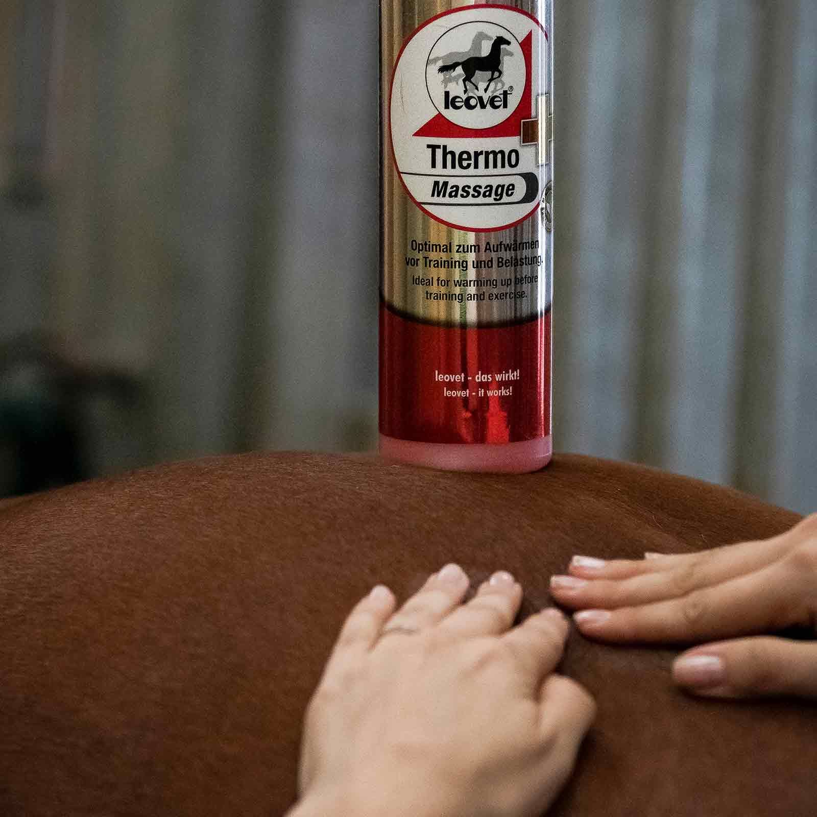 A Leovet Thermo-Massage gél kifejezetten felmelegít hosszas masszázs nélkül. Enyhíti az izomfeszültséget, ezért ideális az edzés és a megerőltetés előtti bemelegítéshez. A Thermo Massage gél különösen kellemes a hátizmoknak a nyeregbe ülés előtt. A benne lévő bergamottolaj a bergamott gyümölcséből segít az izmok fellazításában. A masszázsgél az edzés után is használható a későbbi relaxációhoz. A rövid hatástartam miatt elkerülhető a bőr és a szövetek túlstimulálása.