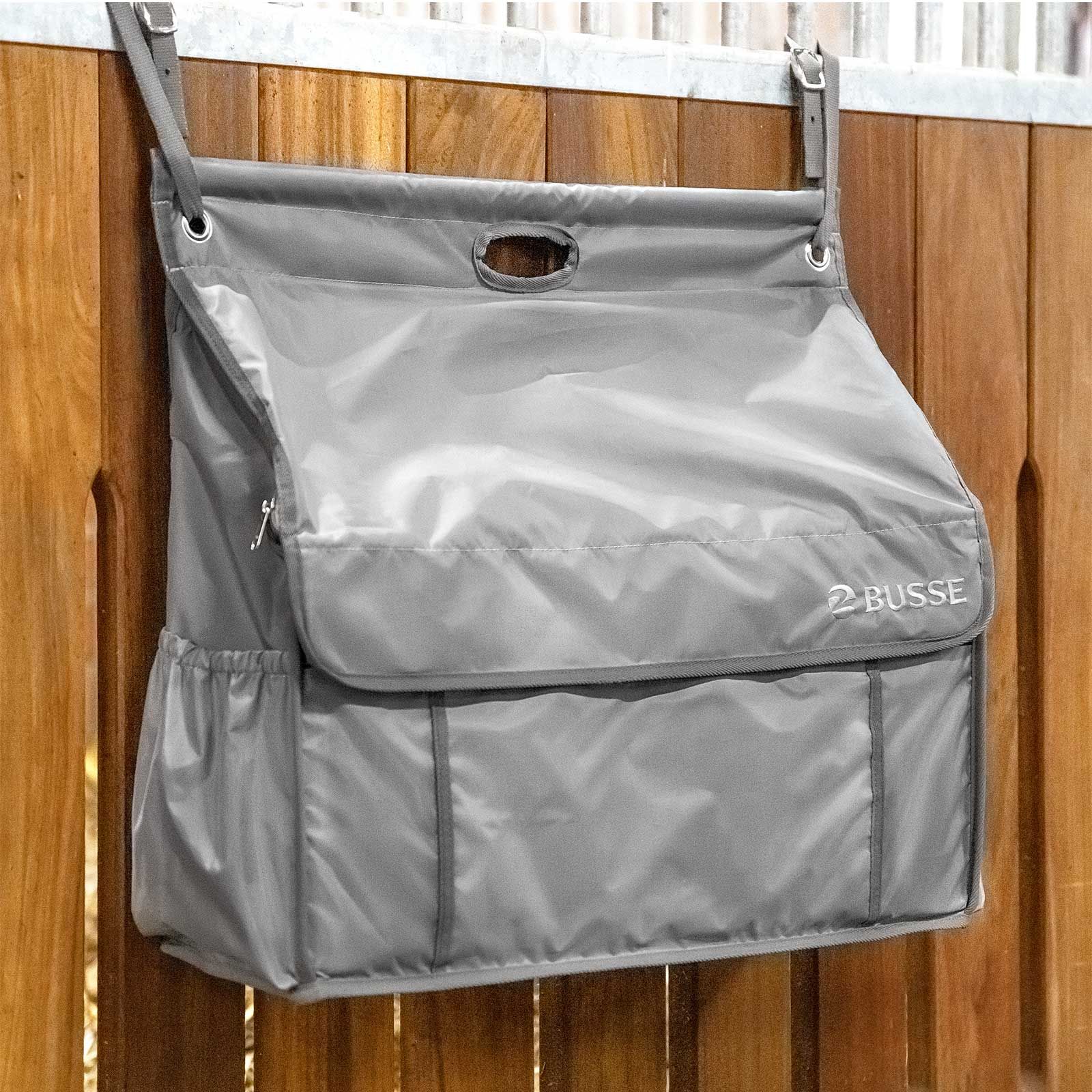 A Busse istálló box táska a fogantyúnak köszönhetően könnyen szállítható, és strapabíró, könnyen ápolható poliészter anyagból készült.