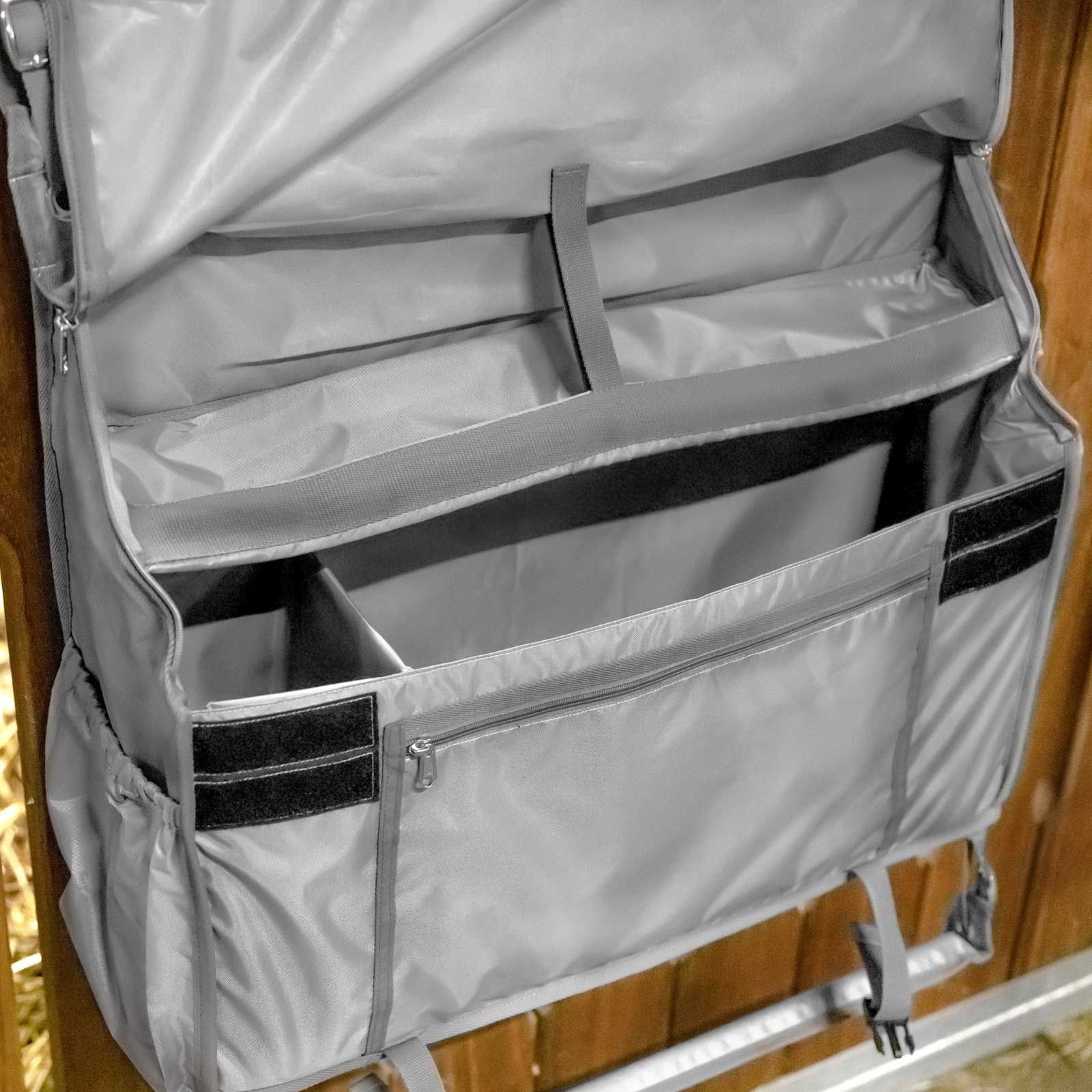 - Szabályozott istállótáska a lótakarók, kötszerek, csengők, ápolási készlet, légyspray és sok más tárolására