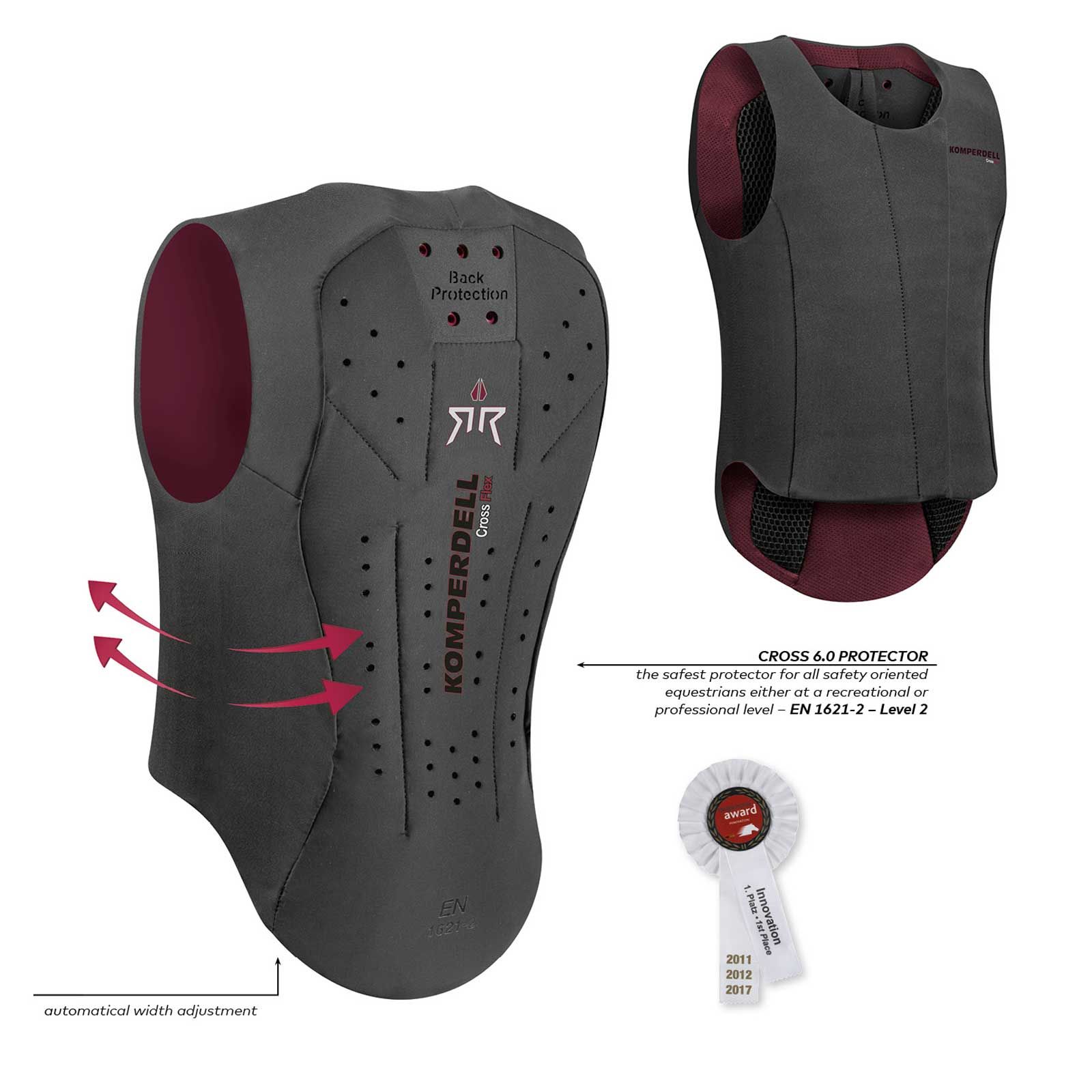 Az automatikus szélességállításnak köszönhetően a biztonsági mellény automatikusan a lovas felsőtestének kerületéhez igazodik, amikor a cipzárt elöl behúzza. A kettős sűrűségű habok viselés közben átölelik a gerincet. Komperdell Ballistic Vest Champion hátvédő - mert csak a legjobb elég jó a gyermekek biztonsága érdekében!