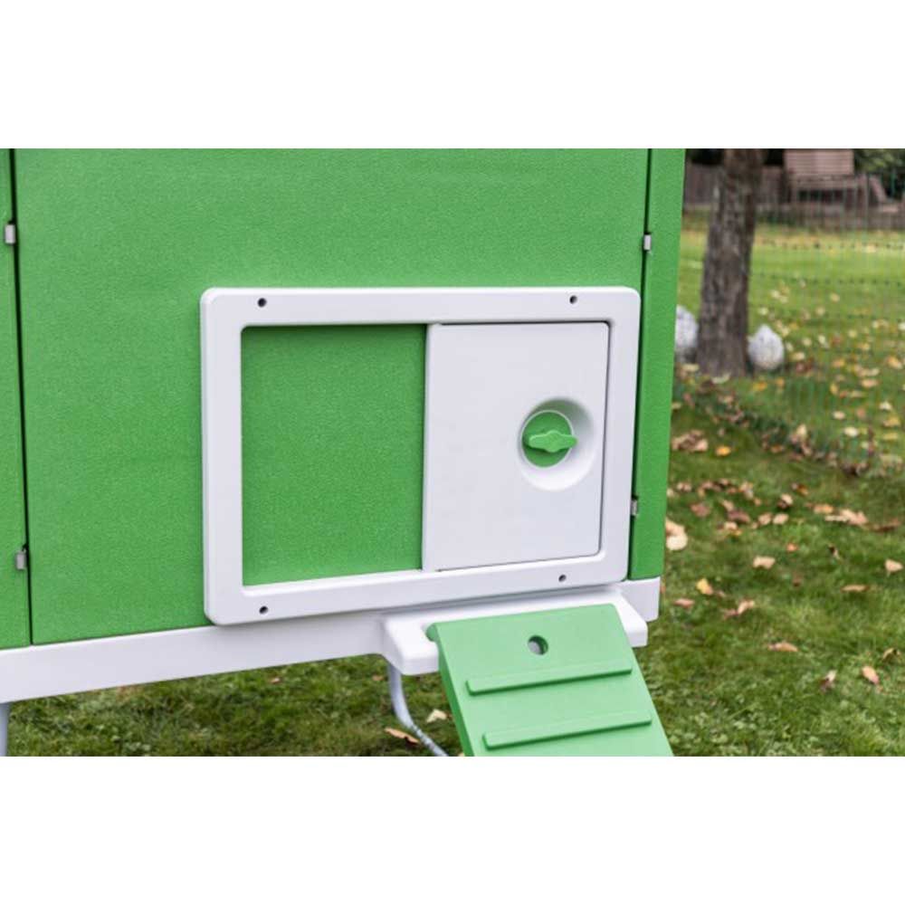 A nagy ablakkal ellátott ajtó biztosítja a fényt a tyúkólban, és garantálja az egészséges nappali-éjszakai ritmust. A biztonságos ajtózár védelmet nyújt a nemkívánatos vendégek (pl. nyestek, róka, mosómedve) ellen. A sima felületek megnehezítik a vörös madáratka megtelepedését. A belső tér tisztítása nagyon egyszerű egy seprűvel vagy kerti slaggal. Az ürülék a belső padlón lévő nyíláson keresztül folyik le. A mobil csirkeól gyorsan és egyszerűen felállítható a kívánt helyen a tartósan rögzített menetes betéteknek köszönhetően.