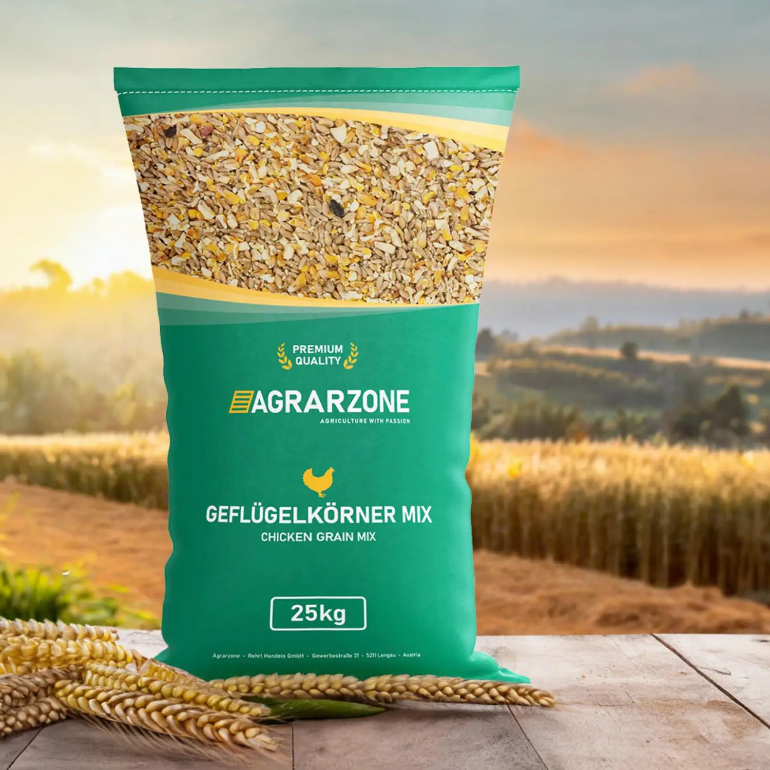 Az Agrarzone csirketáp gabonakeverék a legjobb bio minőségben készült teljes értékű takarmány csirkék számára. Az olyan összetevők, mint a kukorica és a búza fedezik a fontos tápanyagok szükségletét, és fontos energiaszállítóként működnek. Ugyanakkor a gabona értékes fehérjékkel látja el a baromfit. A többszörösen tisztított és porszegény csirketáp osztrák mezőgazdaságból származik. A gyártáshoz a régióból származó nyersanyagokat használnak fel. A takarmány minden összetevője pastus+ AMA minőségbiztosítási pecsét tanúsítvánnyal rendelkezik.