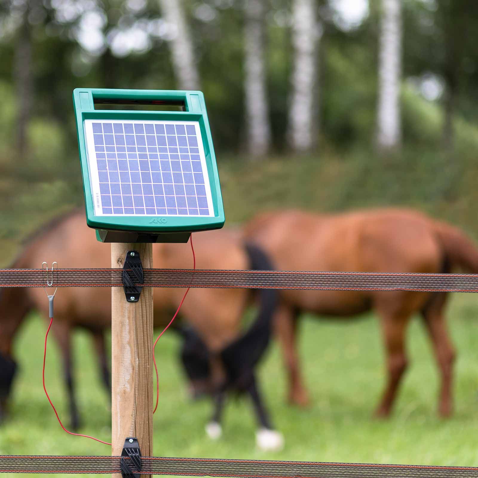 Ez a napelemes villanypásztor készülék ideális a normál, kevés növényzettel rendelkező kerítéseken való használatra. Ideális ló- és szarvasmarha legelőkhöz, valamint baromfihálóhoz, és kifejezetten karbantartásmentes, folyamatos működésre optimalizálták a fő legeltetési szezonban. A magas/alacsony/ki kapcsológomb lehetővé teszi a készülék teljesítményének szükség szerinti beállítását, míg az energiatakarékos áramkör biztosítja, hogy az akkumulátor feszültségének csökkenésekor csökkenjen az energiafogyasztás.