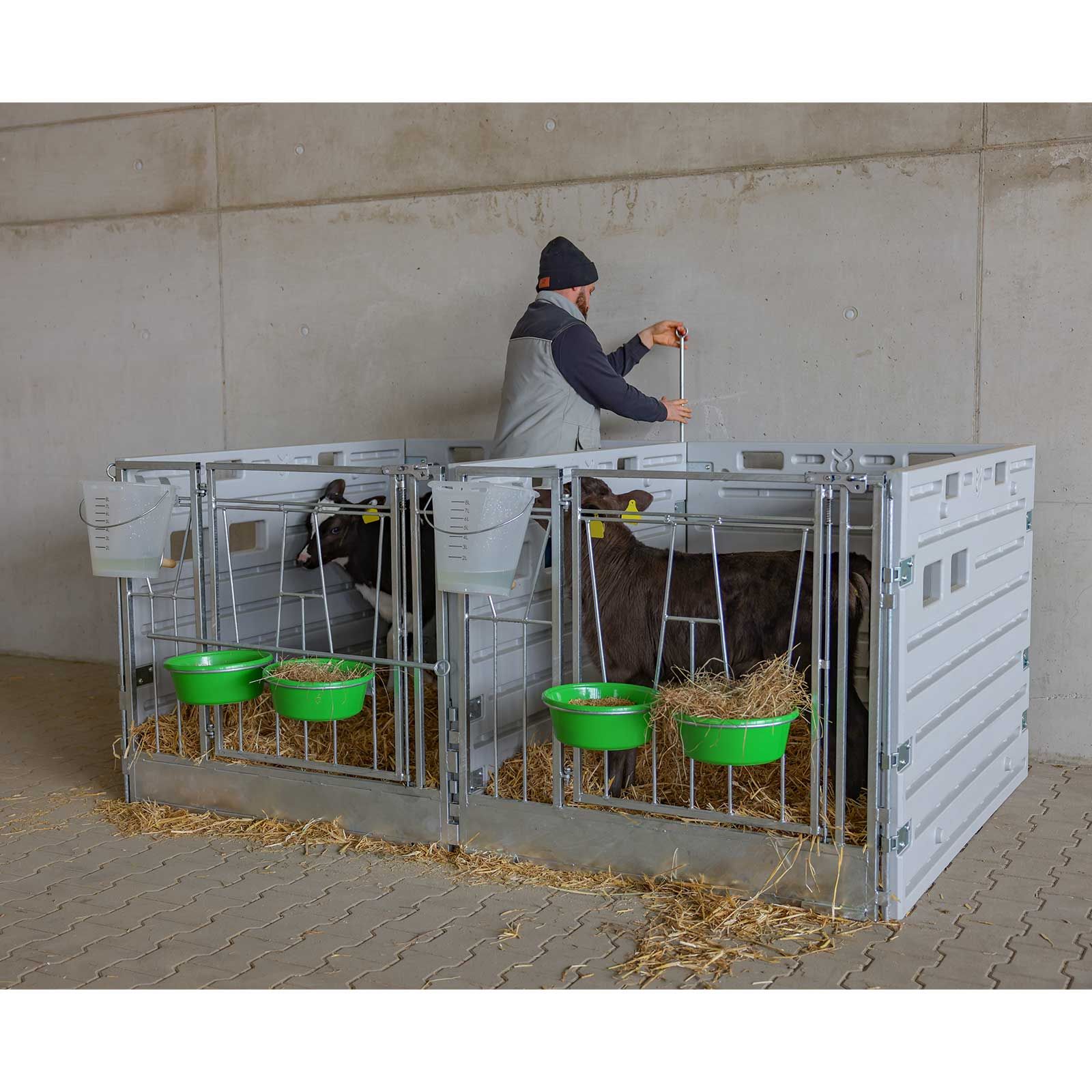 A Kerbl moduláris borjúboxai a lehető legnagyobb rugalmasságot és munkahatékonyságot kínálják. A boxonkénti kb. 1,8 négyzetméteres (1,60 x 1,15 m) méretükkel elegendő helyet biztosítanak a borjak egyedi elhelyezéséhez.