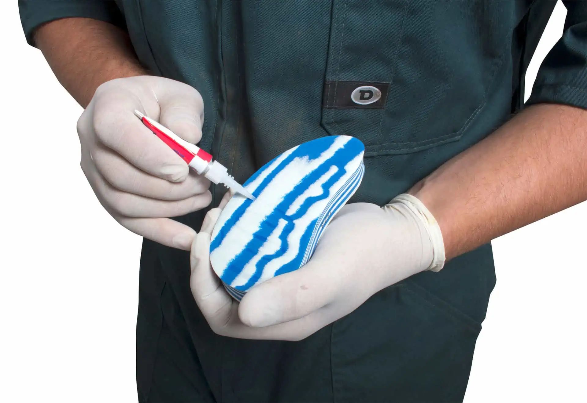 - rendkívül egyszerű - speciális reszelővel dolgozd fel a megtisztított karmot - vigyél fel ragasztót a tömbre - nyomd kb. 10 másodpercig - kész