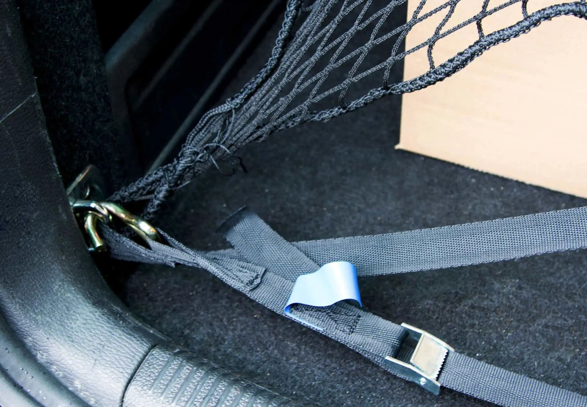 Háló személygépkocsik, kombi rakományok rögzítésére, beleértve a rögzítőhevedereket is