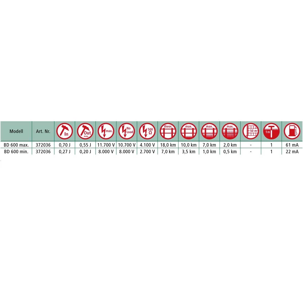 A Power Station BD 600 digital a legerősebb 9 voltos akkumulátoros villanypásztor készülékünk hosszabb kerítésekhez és nehezebb növényzethez.