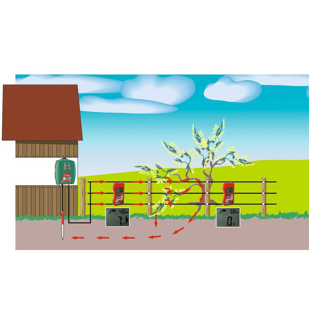 Az elektromos kerítés pontos hibaelhárításához. Ez a készülék duófunkcióval rendelkezik - ez egy digitális kerítésfeszültség- és árammérő. Ez megkönnyíti a kerítés lehetséges hibaforrásainak megtalálását.