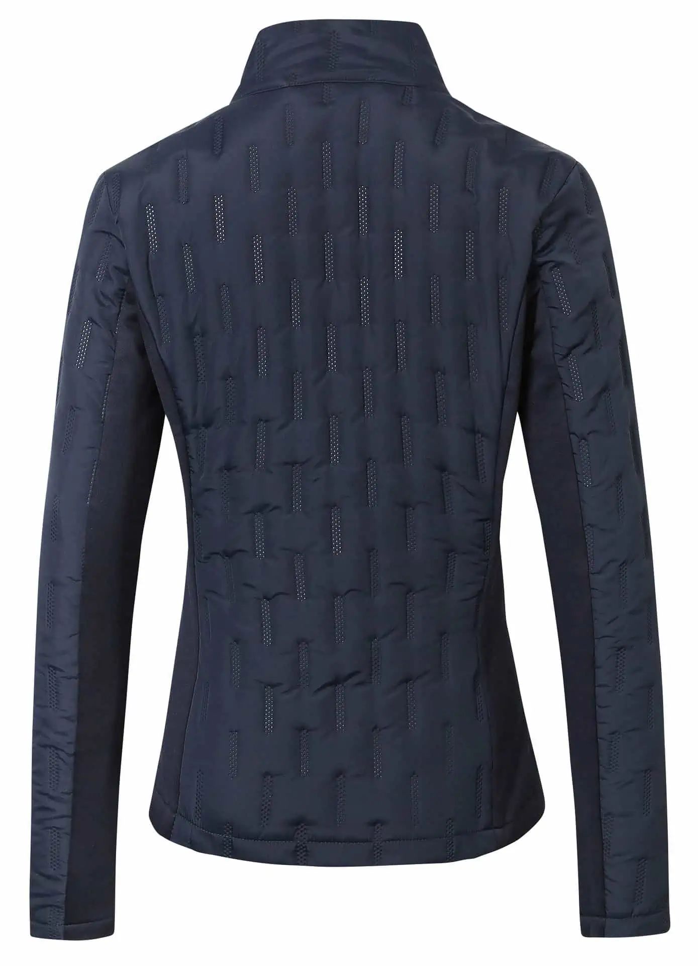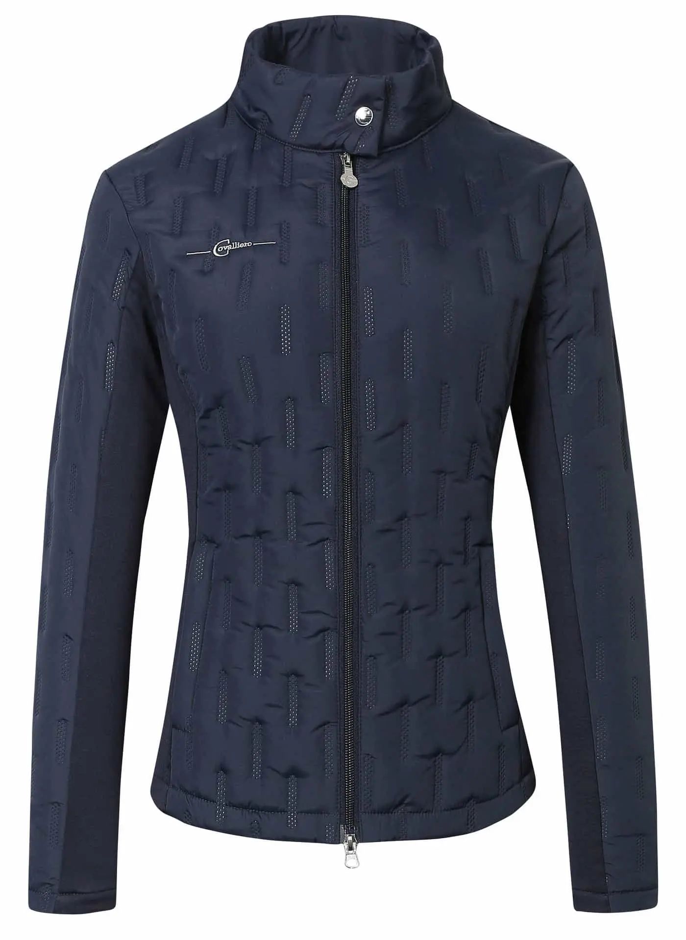 - Elasztikus mikroszálas és steppelt anyagból készült hibrid kabát