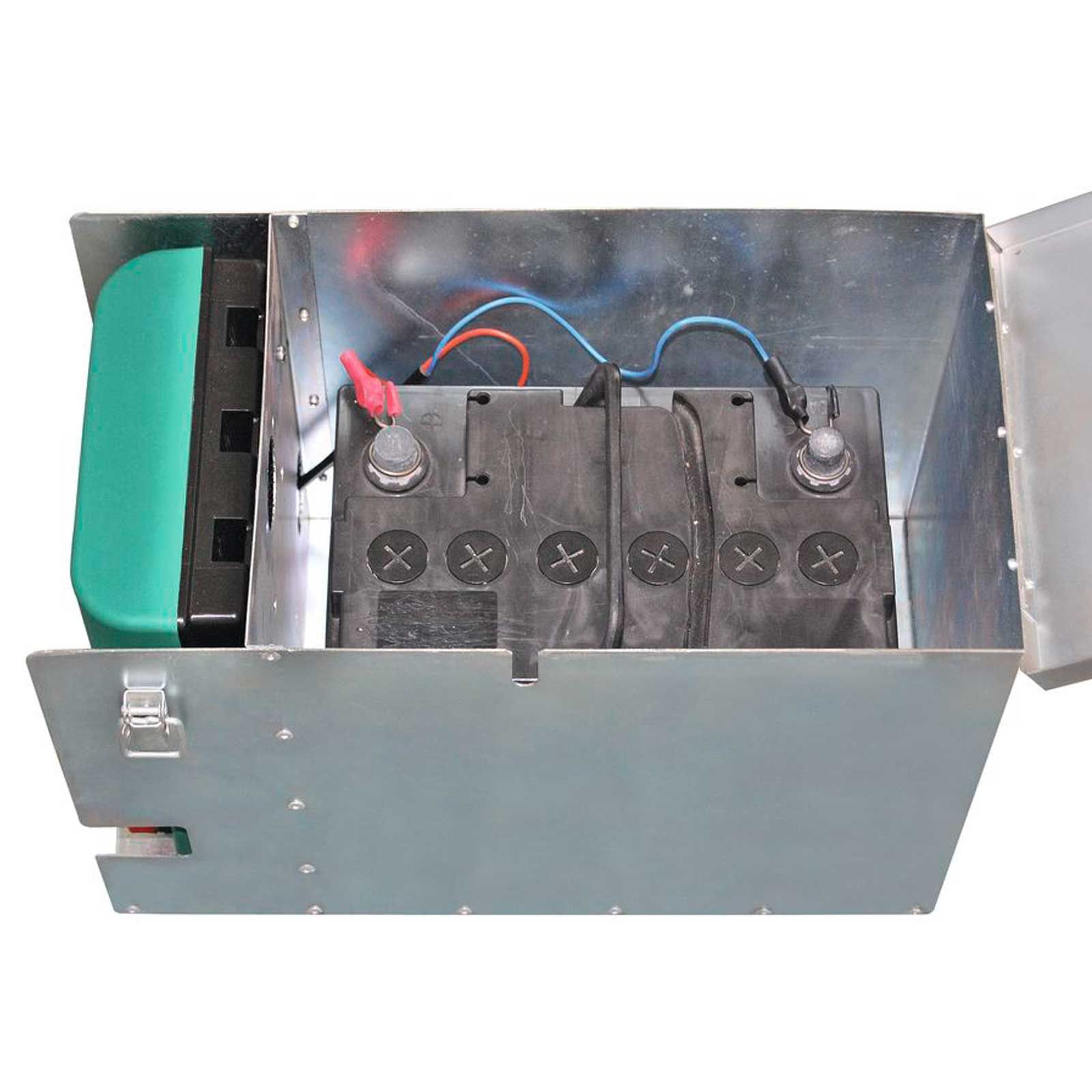 A Savanne 3000 villanypásztor készülék fémdobozzal együtt egy 12 voltos akkumulátoros készülék, amely nagyon nagy kimeneti teljesítményű, hosszú, erős növényzettel borított kerítésekhez.