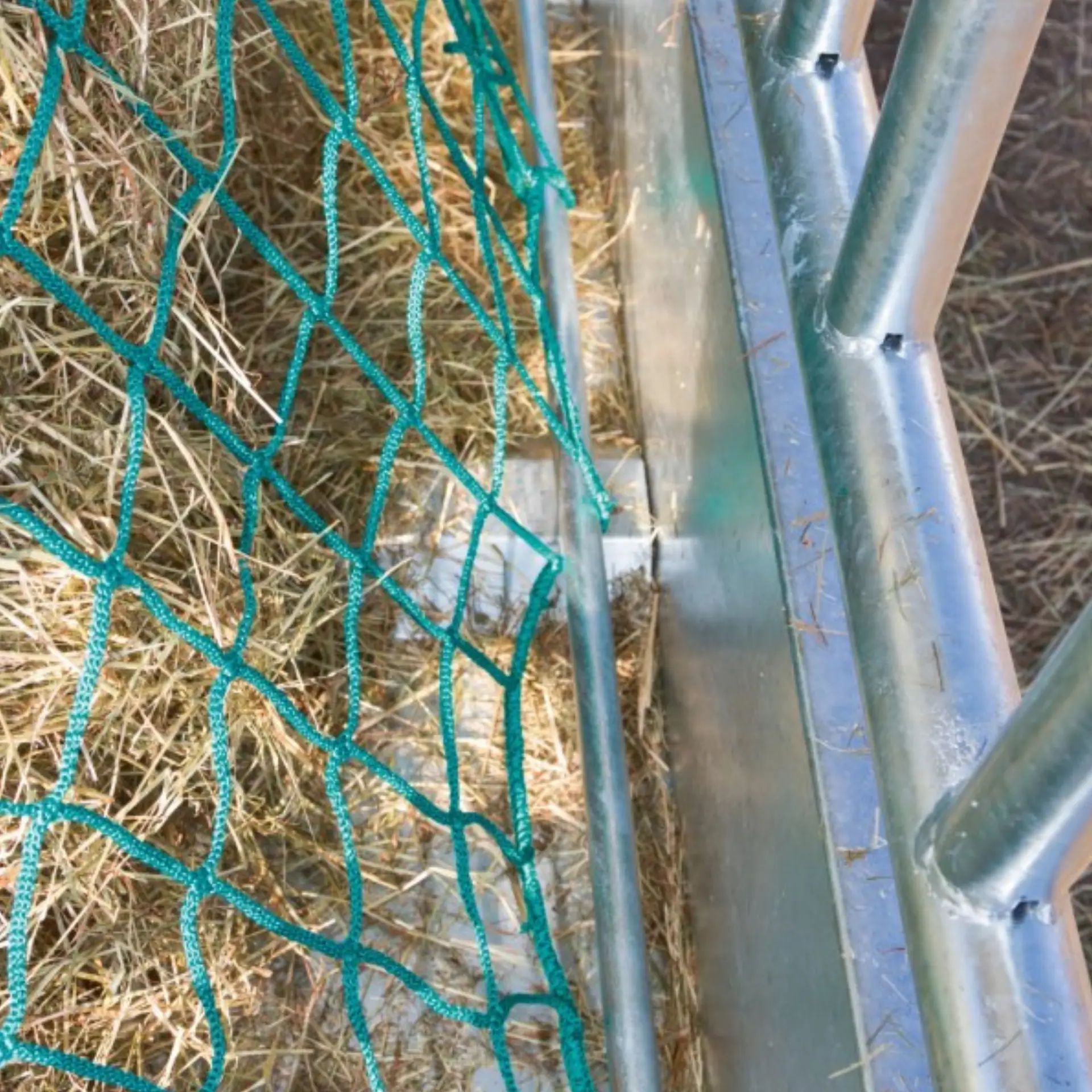 A kiváló minőségű, horganyzott keret biztosítja, hogy a háló mindig biztonságosan a helyén legyen. A keret könnyen nyitható és zárható, és a hálót nem kell minden alkalommal újra meghúzni, amikor megtöltik. Ezenkívül a keret a takarmánytakarékos hálót közvetlenül a széna fölé feszíti, és minden négyzet alakú takarmánytartóhoz alkalmas.